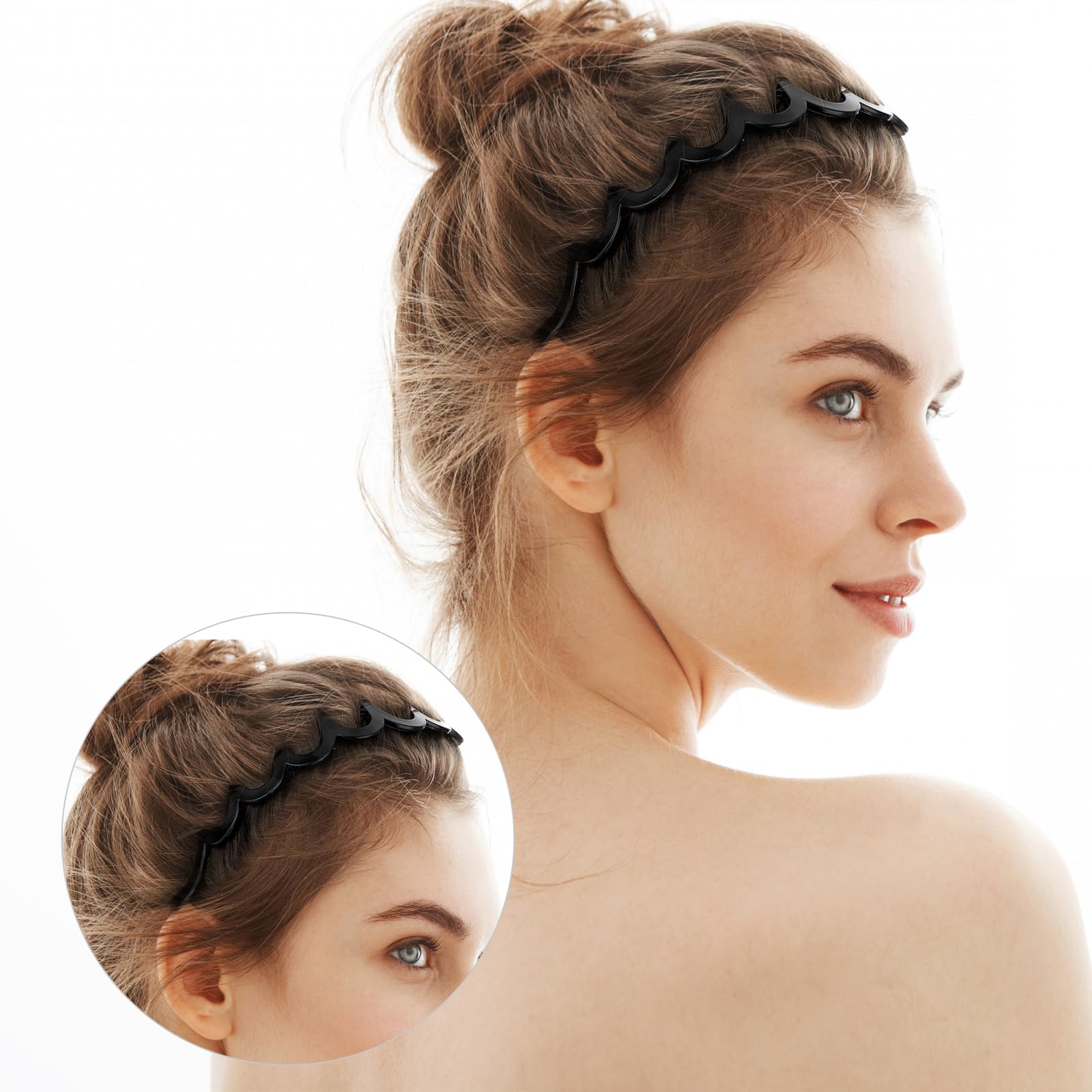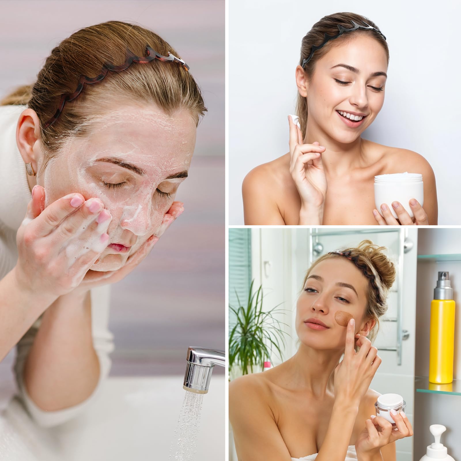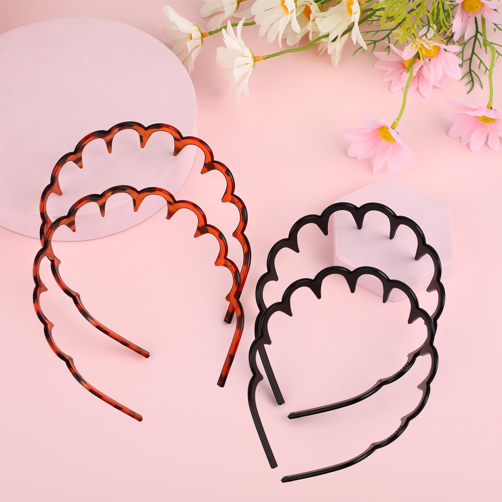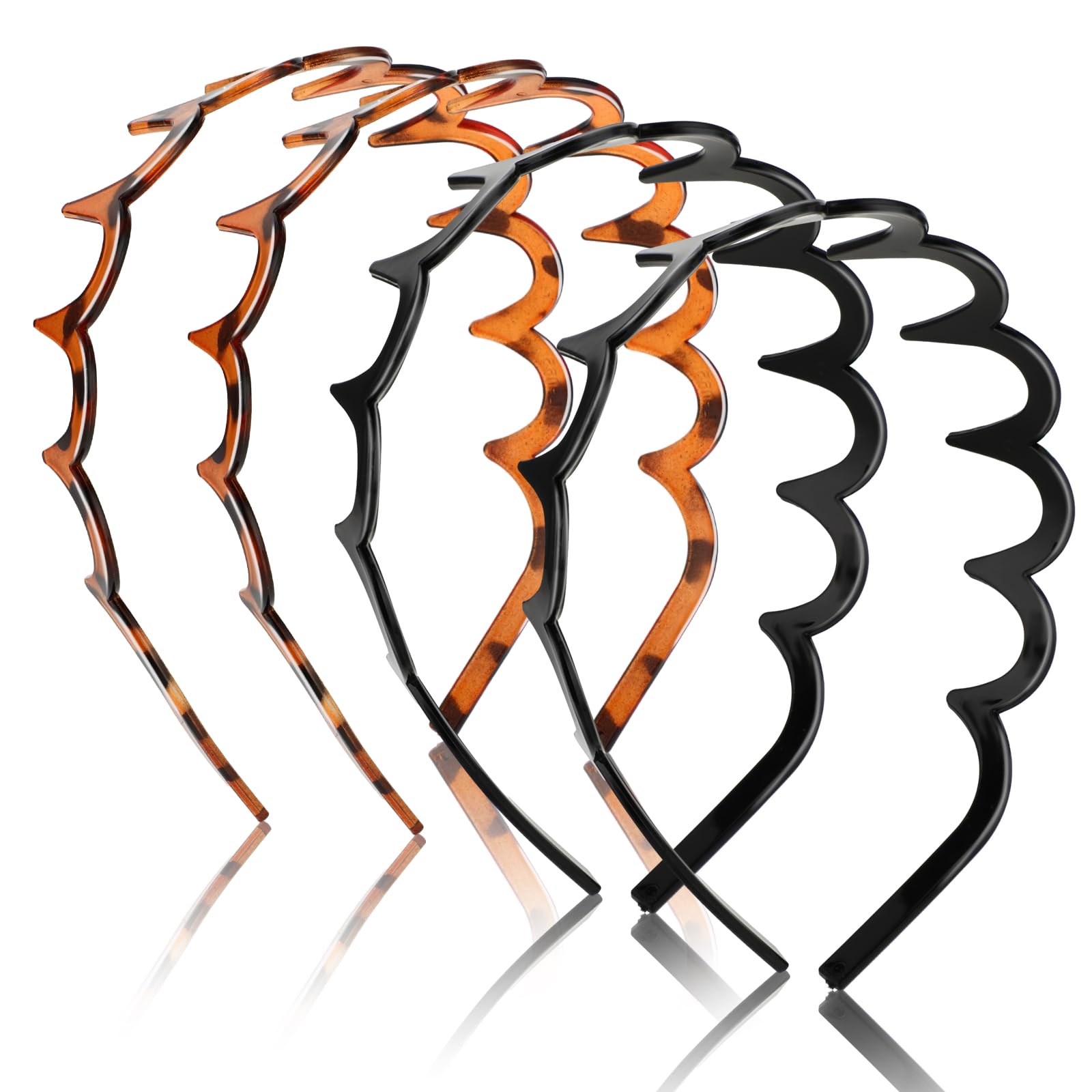Zickzack Haarreif 4 Stück Haifischzahn Haarkamm Haarband Gewellte Kunststoff Stirnband Make Up Haarreif für Sport Fitness Tägliches für Damen Und Mädchen (Schwarz/Leopardenmuster)