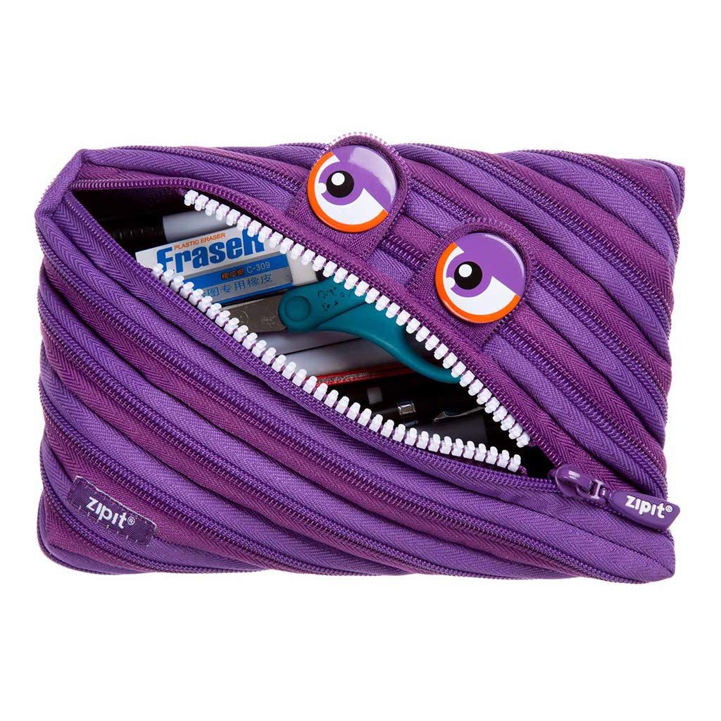 ZIPIT Wildlings Federmäppchen für Mädchen, Extra Grosses Mäppchen für die Schule, Monster Etui für Kinder, Federmappe Lila