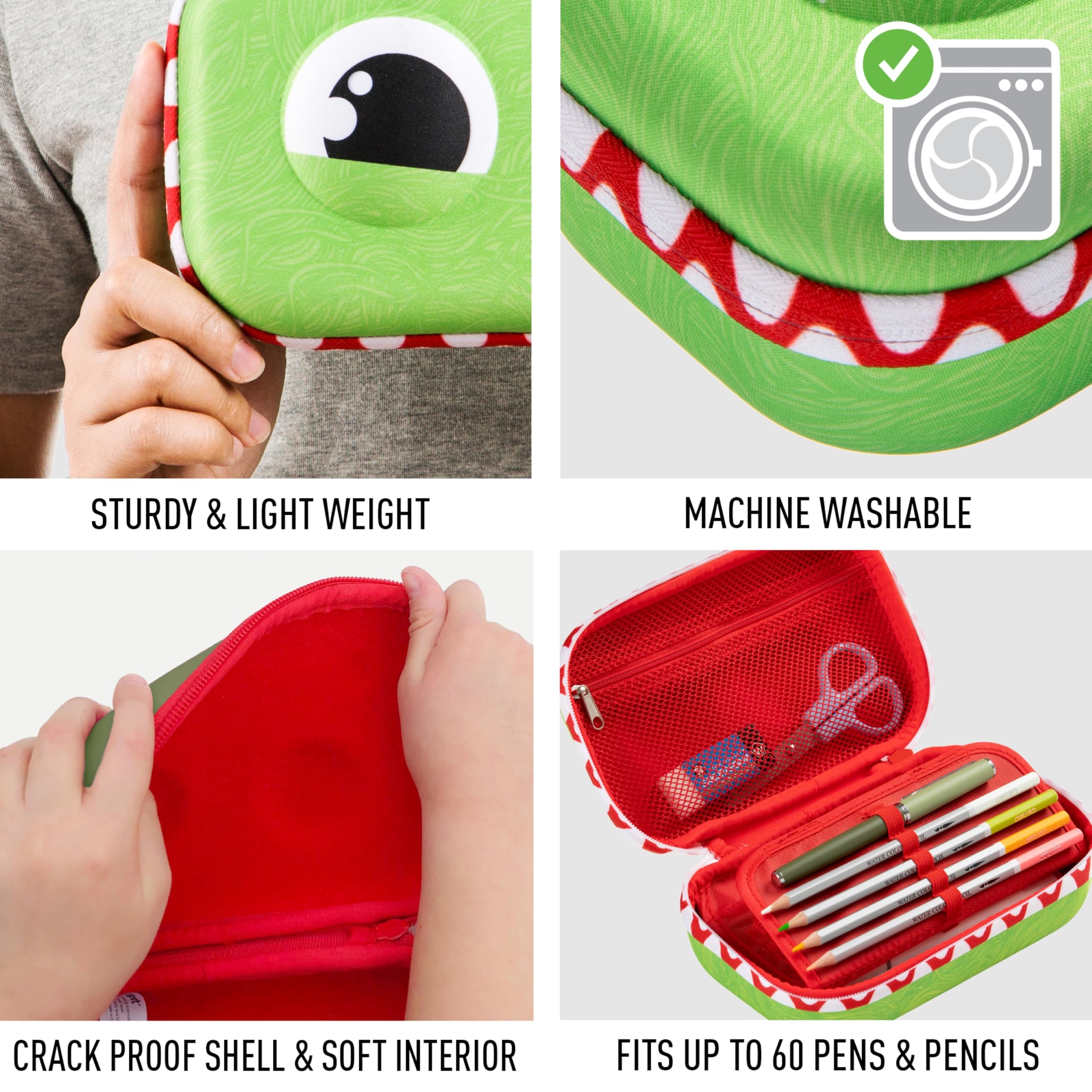 Diese Monster-Aufbewahrungsbox wird Ihren Sinn für Stil begeistern. Im Gegensatz zu herkömmlichen Plastikhüllen wird dieses niedliche Federmäppchen niemals reissen oder brechen. Die geformte Aussenhülle ist langlebig und schützend, und die weiche, kratzfeste Innenseite umschliesst sanft alles, was sich darin befindet. Das grosse Einzelfach misst 21 x 13,5 x 7,5 cm und bietet verstärkte Aufbewahrungsmöglichkeiten für all Ihre Schul-, College-, Büro- oder persönlichen Dinge. Das Material und die Konstruktion sorgen für hervorragende Qualität, zusätzliche Haltbarkeit und machen es sogar maschinenwaschbar, sodass es das ganze Jahr über gut aussieht.