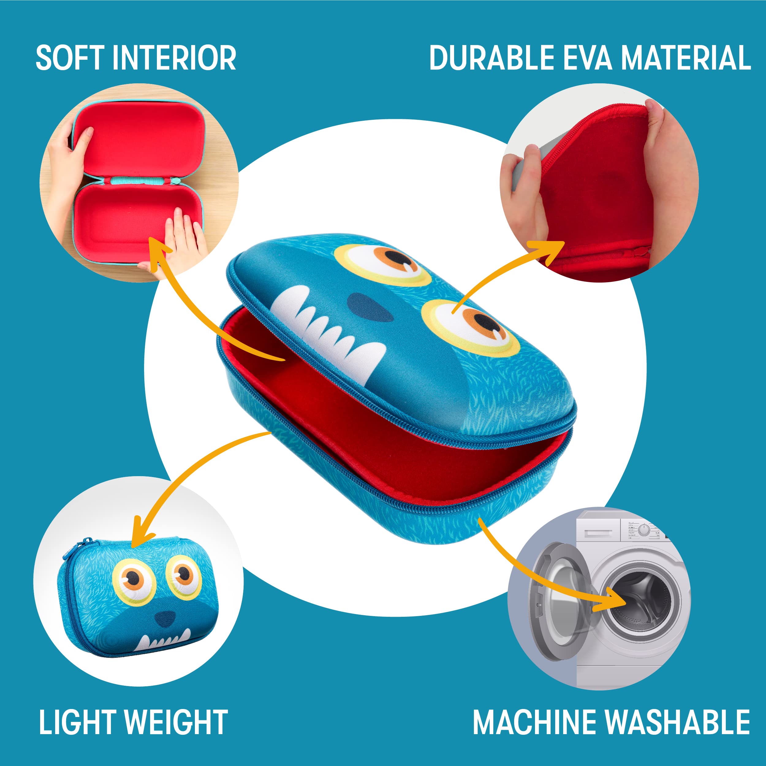 Diese Monster-Aufbewahrungsbox wird Ihren Sinn für Stil begeistern. Im Gegensatz zu herkömmlichen Plastikhüllen wird dieses niedliche Federmäppchen niemals reissen oder brechen. Die geformte Aussenhülle ist langlebig und schützend, und die weiche, kratzfeste Innenseite umschliesst sanft alles, was sich darin befindet. Das grosse Einzelfach misst 21 x 13,5 x 7,5 cm und bietet verstärkte Aufbewahrungsmöglichkeiten für all Ihre Schul-, College-, Büro- oder persönlichen Dinge. Das Material und die Konstruktion sorgen für hervorragende Qualität, zusätzliche Haltbarkeit und machen es sogar maschinenwaschbar, sodass es das ganze Jahr über gut aussieht.