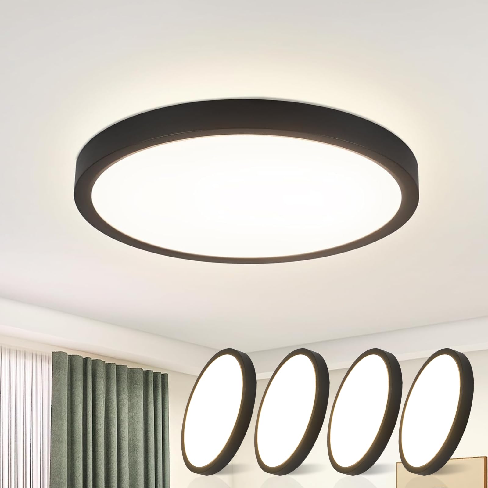 ZMH 4ER Deckenlampe LED Deckenleuchte Badezimmer - Badezimmerlampe Flach 15W Küchenlampe Schwarz Flurlampe 4000K Küche Deckenbeleuchtung Rund Badlampe Decke Ø18cm für Flur Bad Schlafzimmer