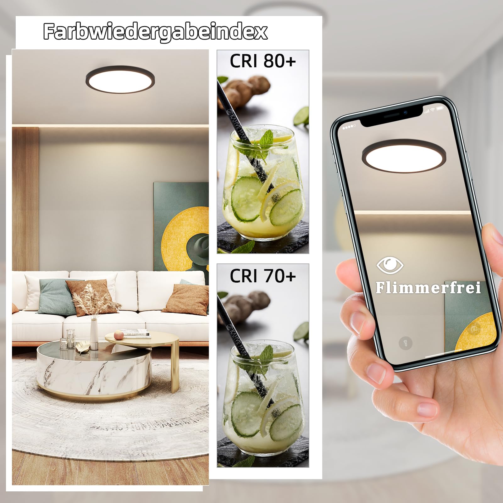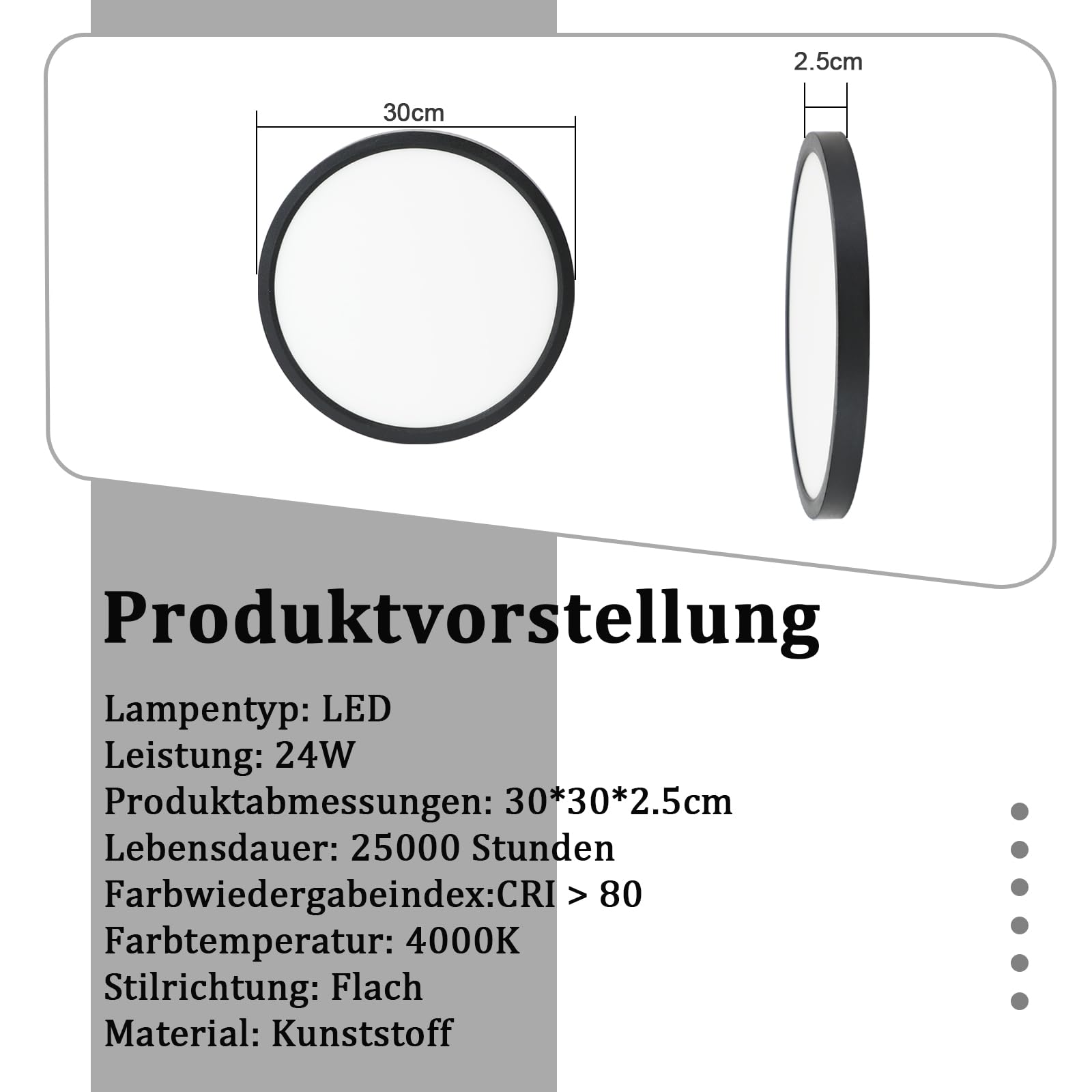 ZMH Deckenlampe LED Deckenleuchte Badezimmer - Ø30cm Badezimmerlampe Flach Schlafzimmerlampe Schwarz Küchenlampe 4000K Schlafzimmer Deckenbeleuchtung 24W Badlampe Rund Flurlampe für Bad Küche Flur