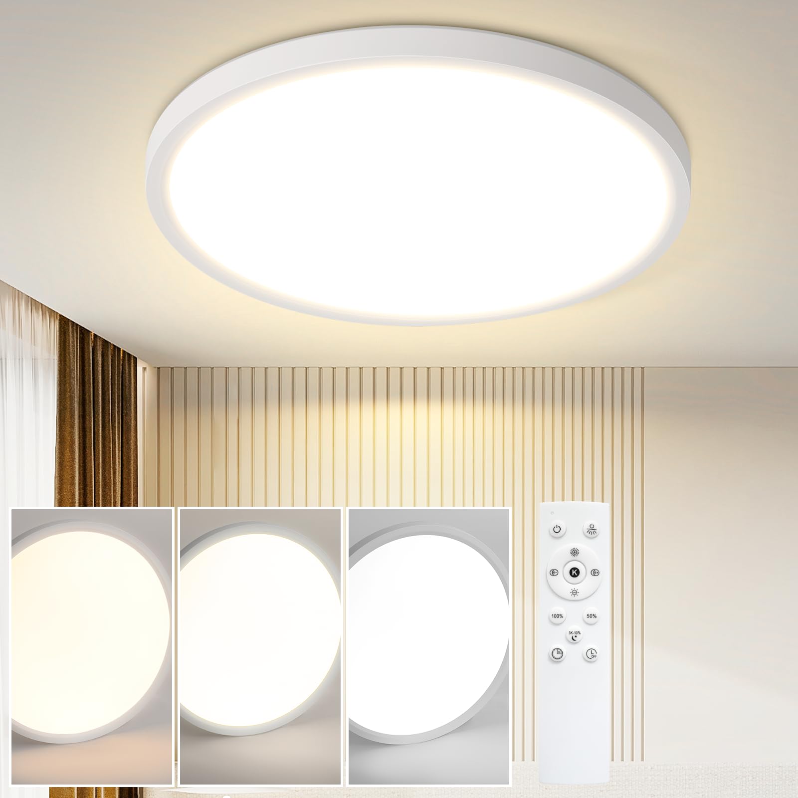 ZMH Deckenlampe LED Deckenleuchte Flach - Ø30cm Badezimmerlampe Badezimmer Dimmbar Rhombenplatte Augenschutz Küchenlampe Rund Weiss 24W Ultra Dünn Flurlampe Badlampe für Bad Küche Flur Schlafzimmer