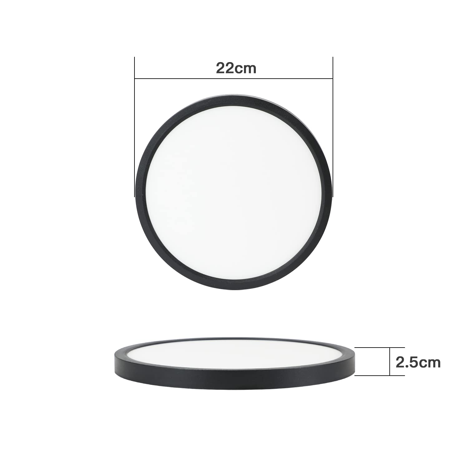 Zmh LED-Deckenleuchte, flach, 15 W, Badezimmer, Neutralweiss, 22 cm, Küchenleuchte, IP44, wasserdicht, Küchenlampe, rund, schwarz, für Schlafzimmer, Badezimmer, Flur, Wohnzimmer, Balkon