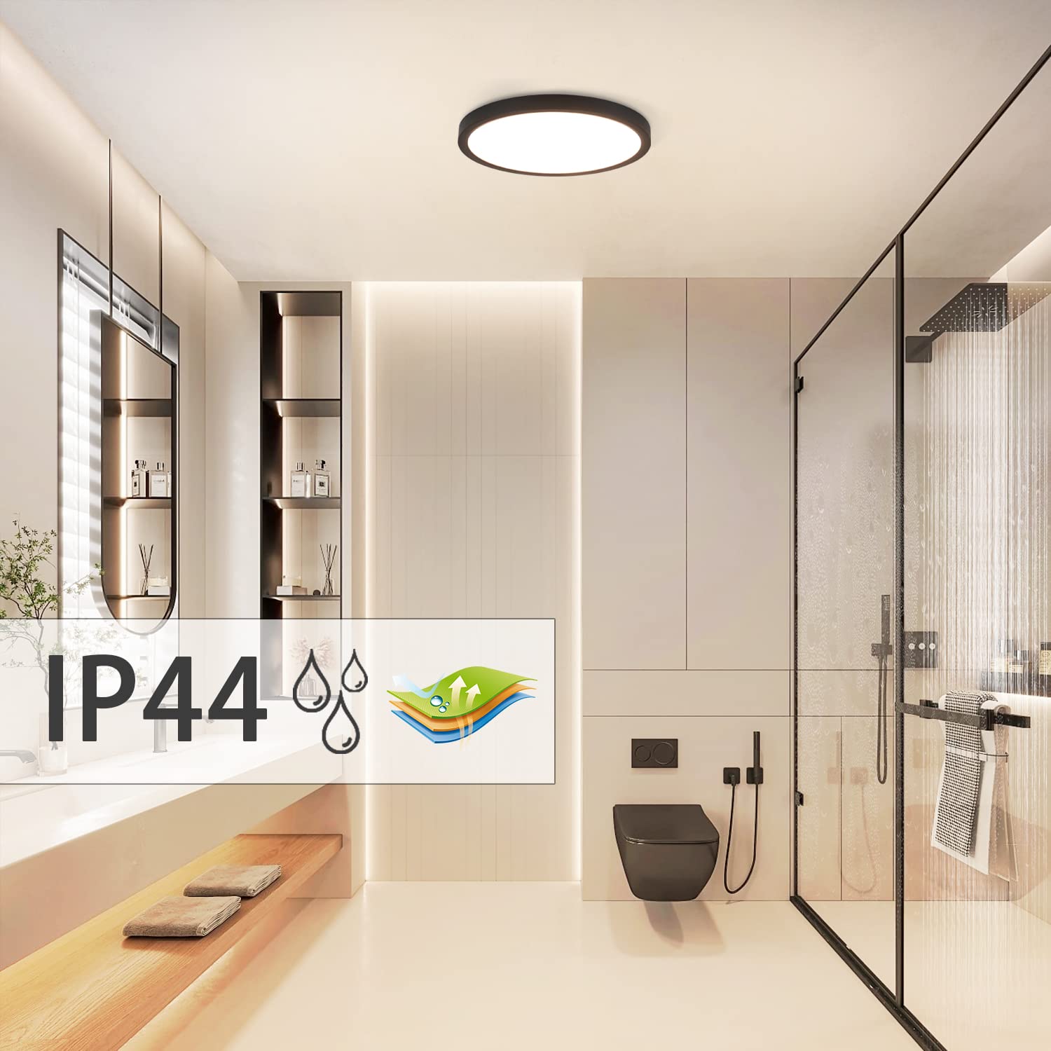 ZMH Deckenlampe LED Deckenleuchte Flach - 18W Badlampe 4000K Ø23cm Schlafzimmer Küche Deckenbeleuchtung Schlafzimmerlampe IP44 Wasserdicht Flurlampe Schwarz Küchenlampe Rund für Bad Flur Wohnzimmer