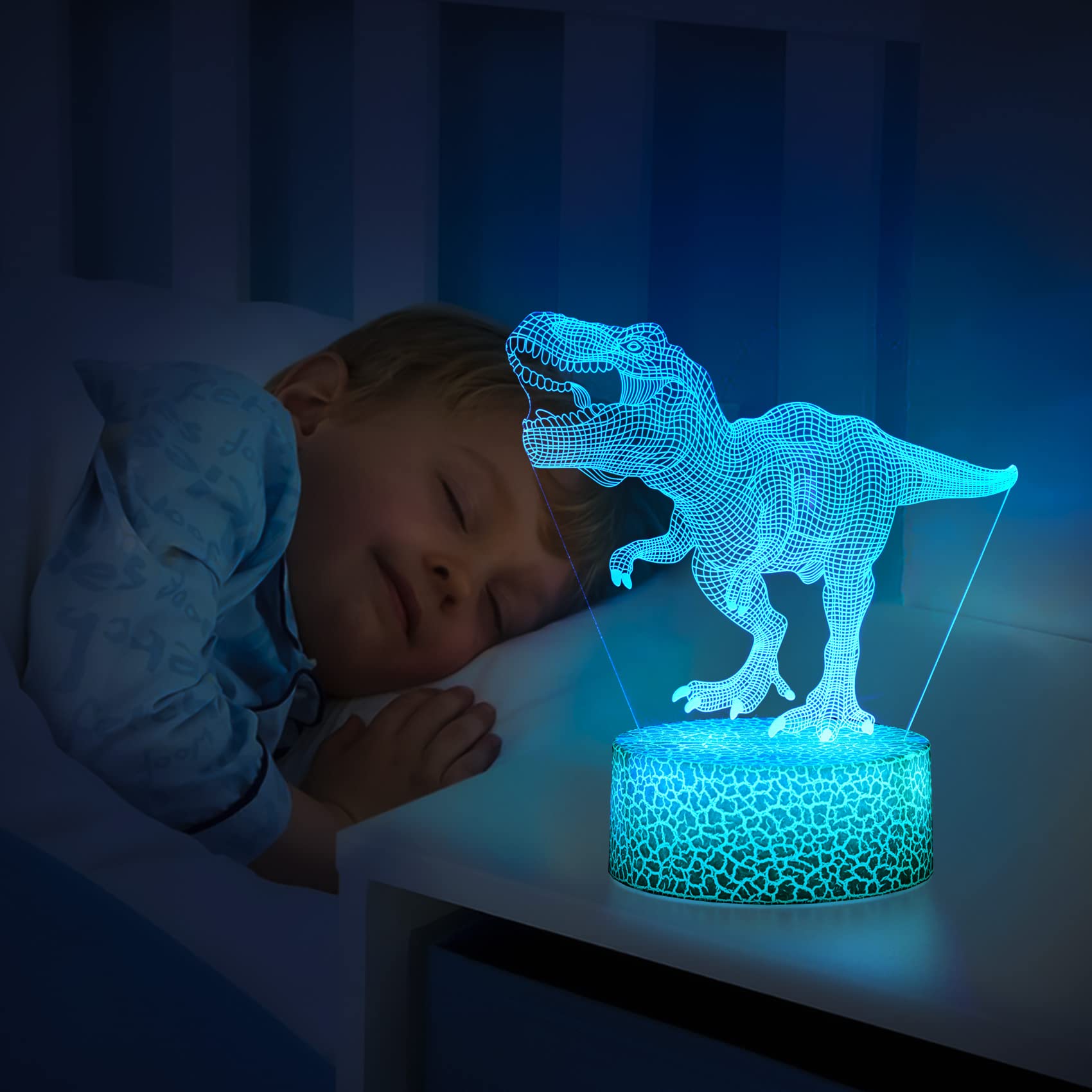 ZNZ 3D Lampe, LED Illusion Nachtlicht, 16 Farbwechsel 4 Models mit Remote & Smart Touch Stimmungslichter, Nachttischlampe Dinosaurier Geschenke für Männer Mädchen Jungen Kinder