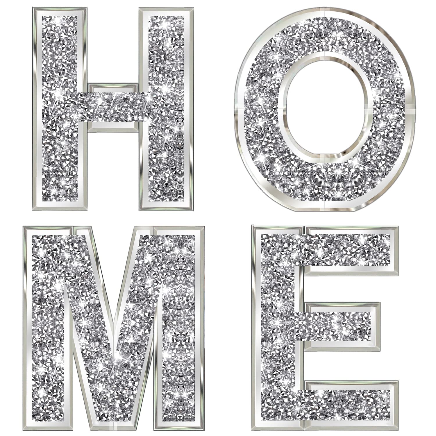 ZOLAPI 4 Stück unabhängige Buchstaben Home. Glam Kristall-Diamant-Buchstaben. Silbernes Spiegelglas, Heimdekoration für Wand, Kamin, Bücherregal und Tisch.
