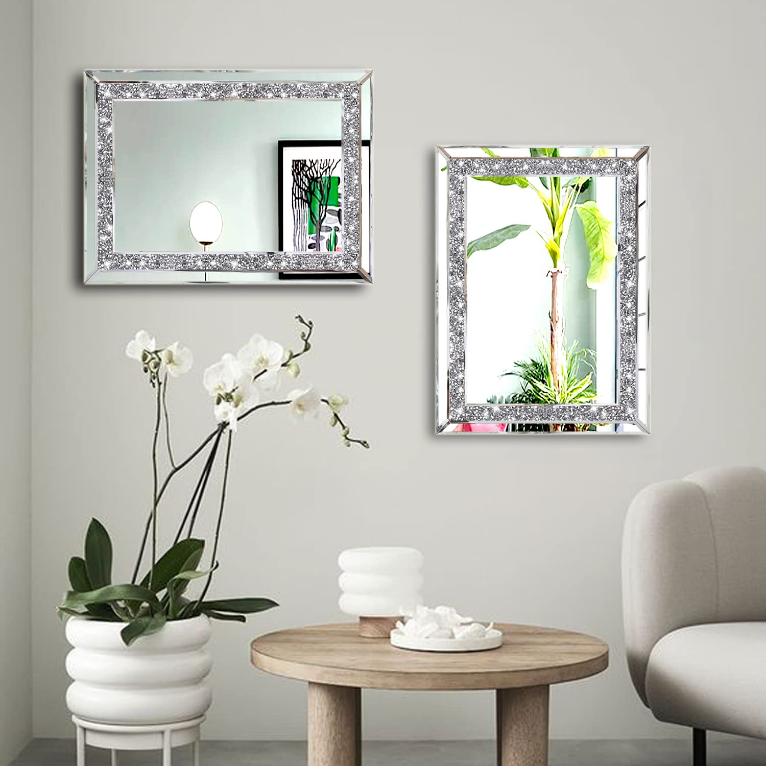 ZOLAPI Wandspiegel mit Strasssteinen und Strasssteinen, brillanter, handgespleisster Glasspiegel, dekorativer Spiegel für Flur/Badezimmer/Schlafzimmer (27,9 x 38,1 cm)