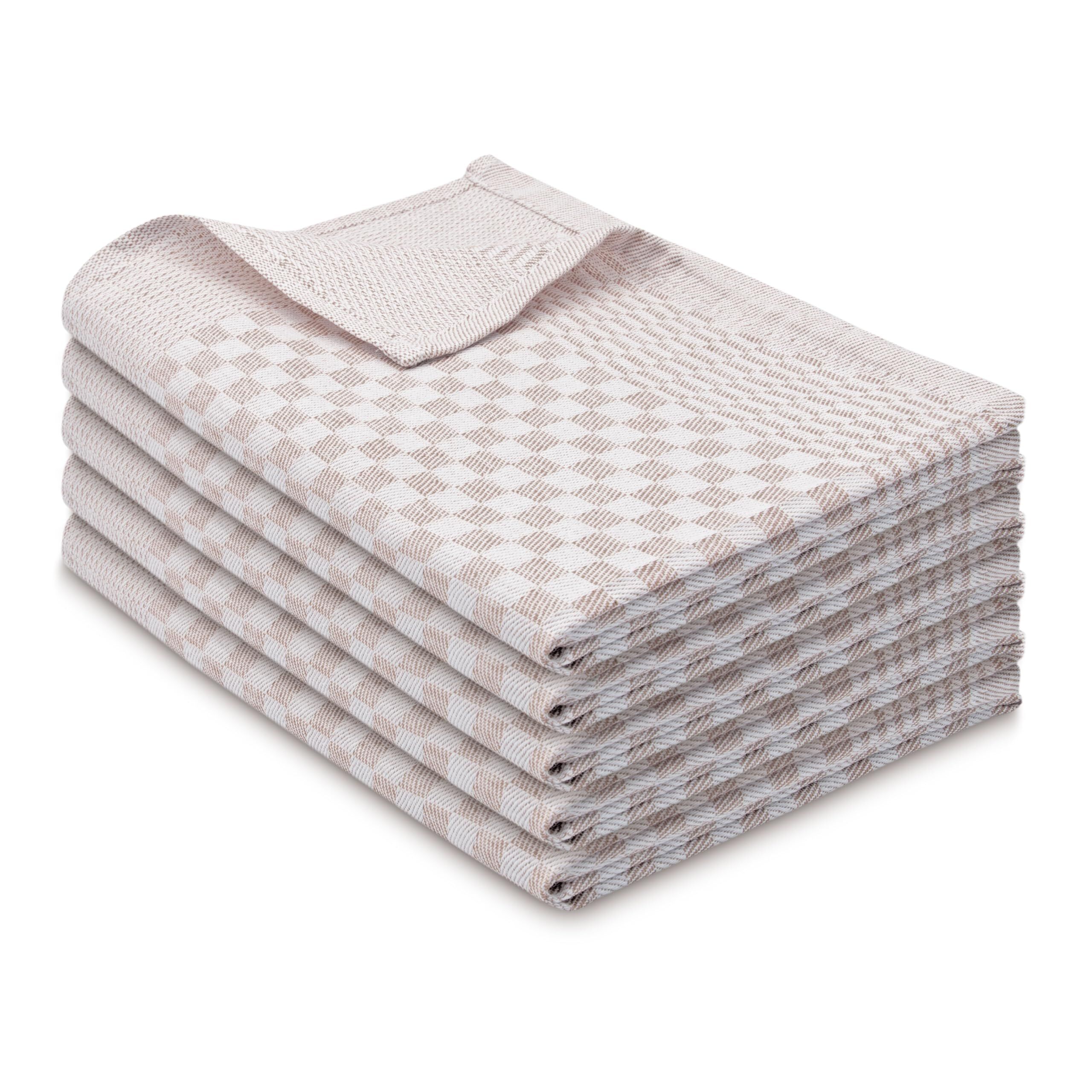 ZOLLNER 5er Set Geschirrtücher Baumwolle in 46x70 cm - super saugstarke und robuste Küchentücher – waschbar bis 60°C – in braun kariert - Gastronomiequalität - Oeko Tex® Zertifiziert