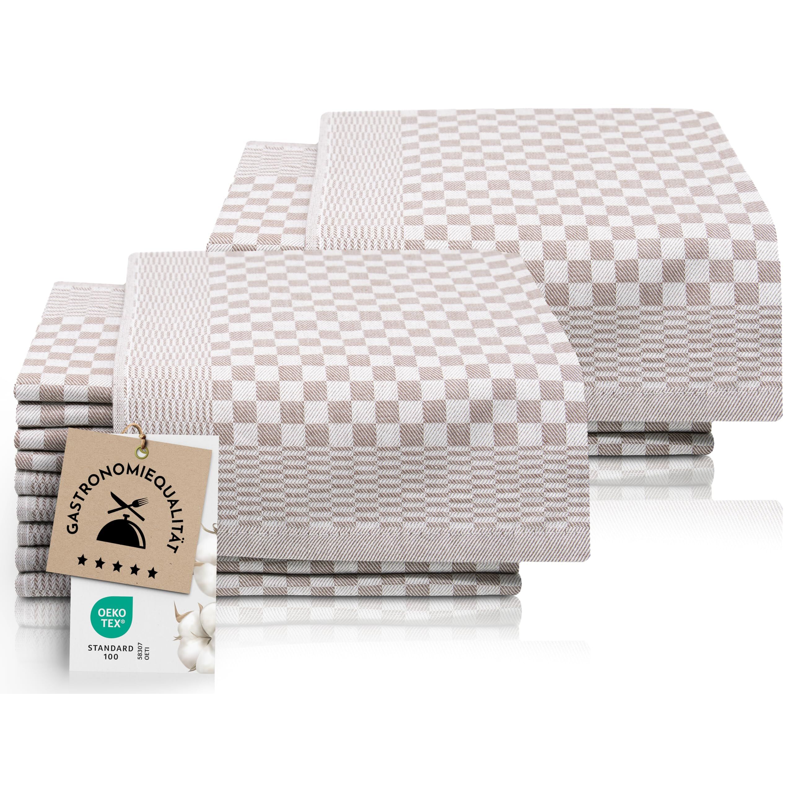 ZOLLNER 20er Set Geschirrtücher Baumwolle in 46x70 cm - super saugstarke und robuste Küchentücher – waschbar bis 60°C – in braun kariert - Gastronomiequalität - Oeko Tex® Zertifiziert