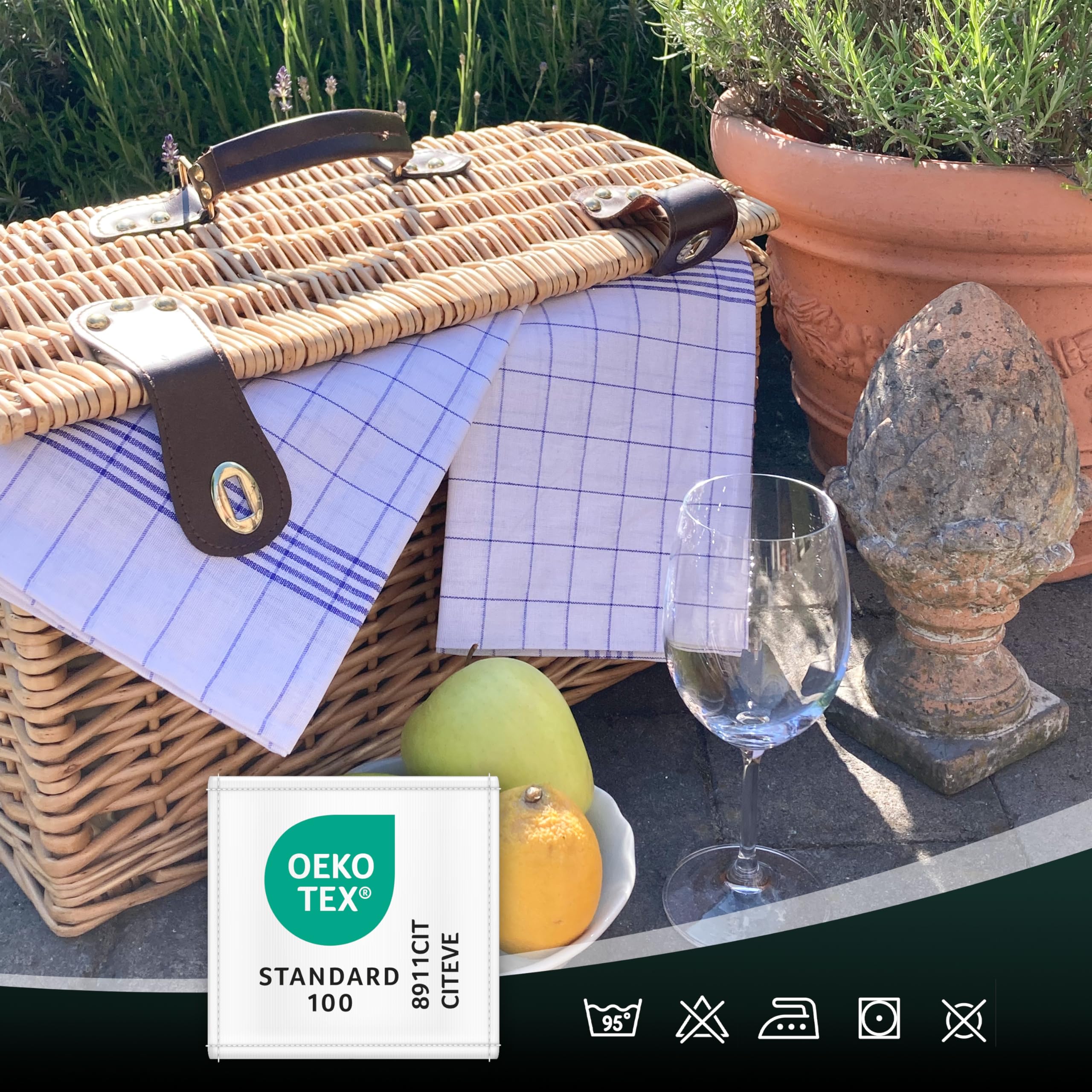ZOLLNER 12er Set Geschirrtücher Halbleinen in 50x70 cm - super saugstarke und fusselfreie Küchentücher – waschbar bis 95°C – in blau weiss kariert - Gastronomiequalität - Oeko Tex® Zertifiziert