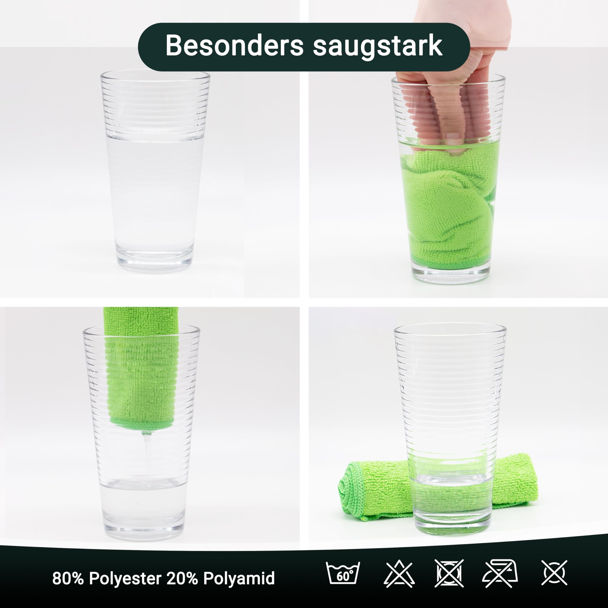 ✓ Die schnelltrocknenden Tücher sind bei 60°C waschbar. 80% Polyester und 20% Polyamid