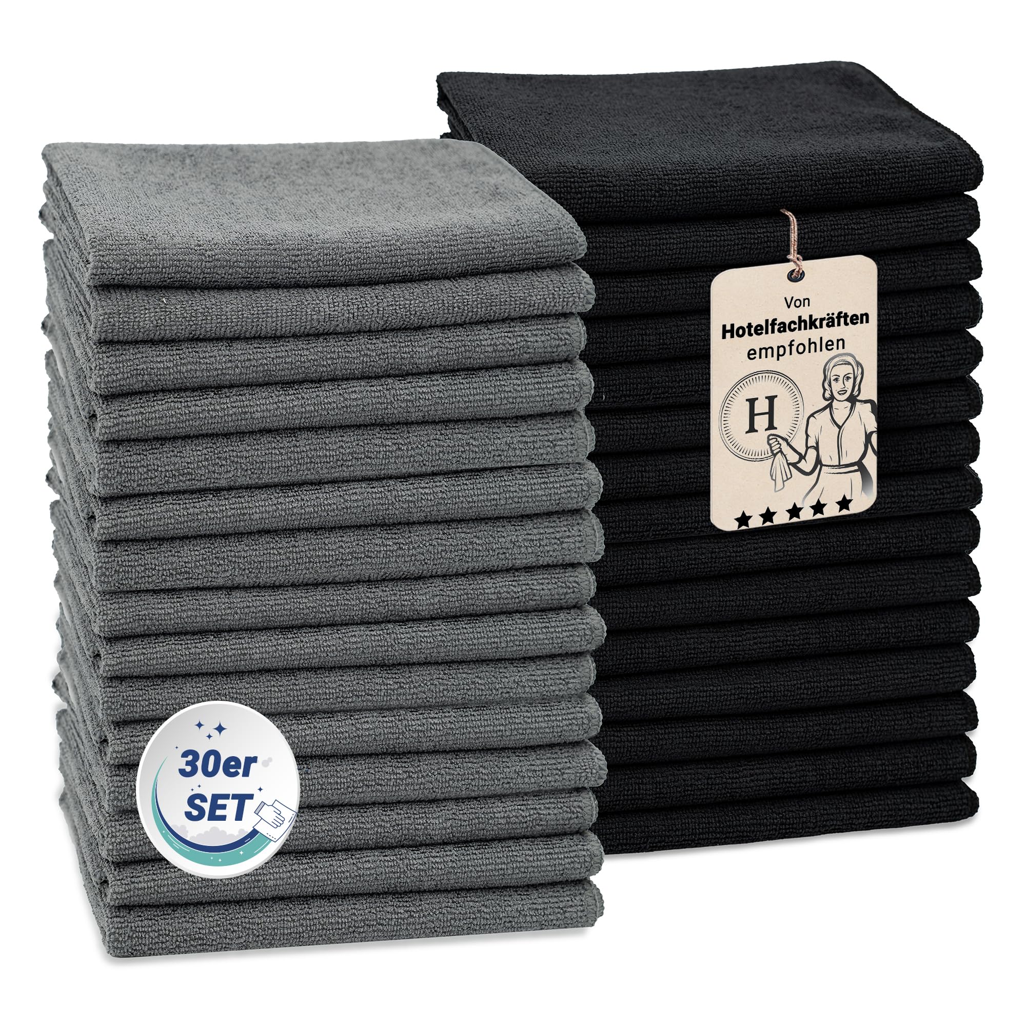 ZOLLNER 30er Set Mikrofasertücher für streifenfreien Glanz - flusenfreie und saugstarke Reinigungstücher - waschbar bis 60°C - 32x32cm - Hotelqualität