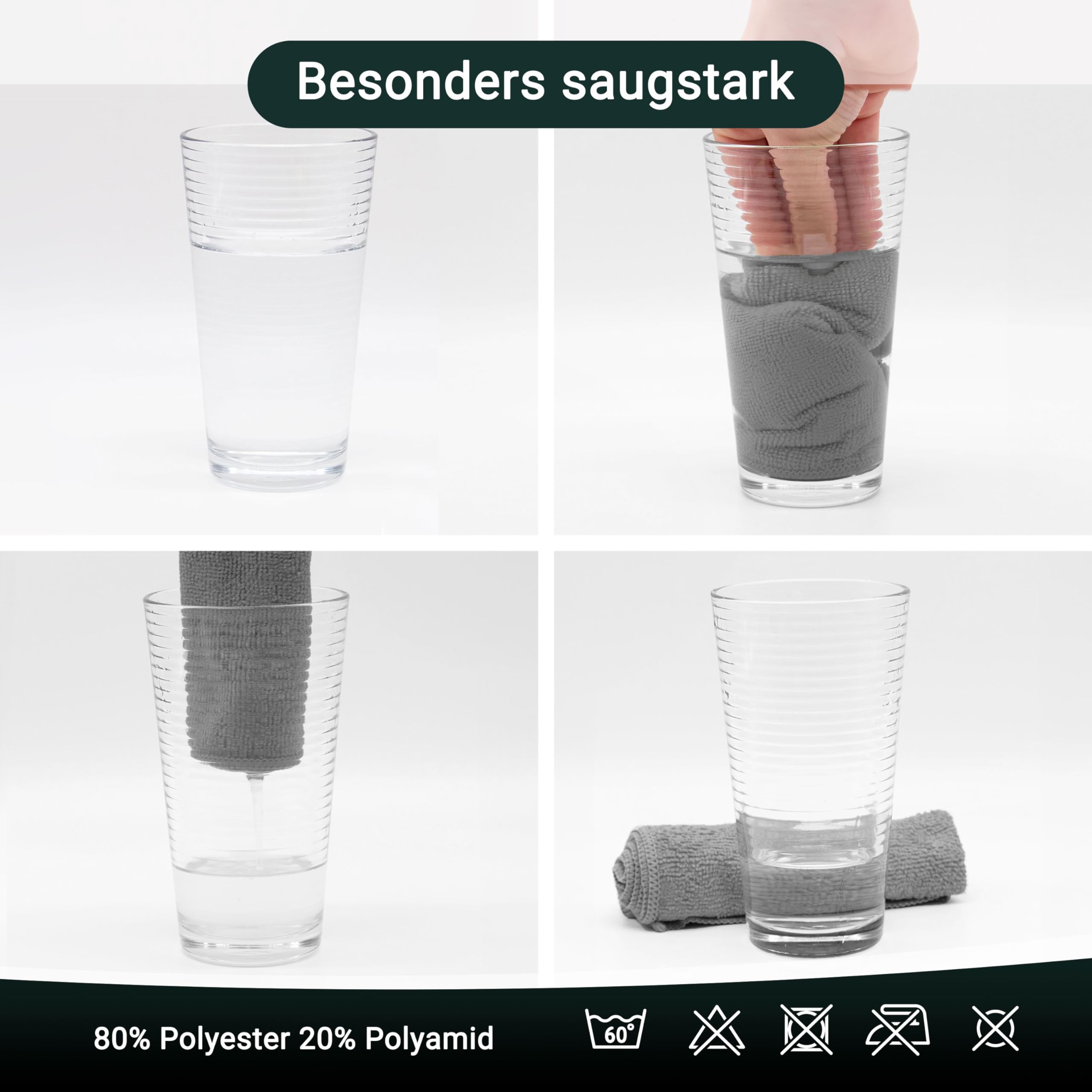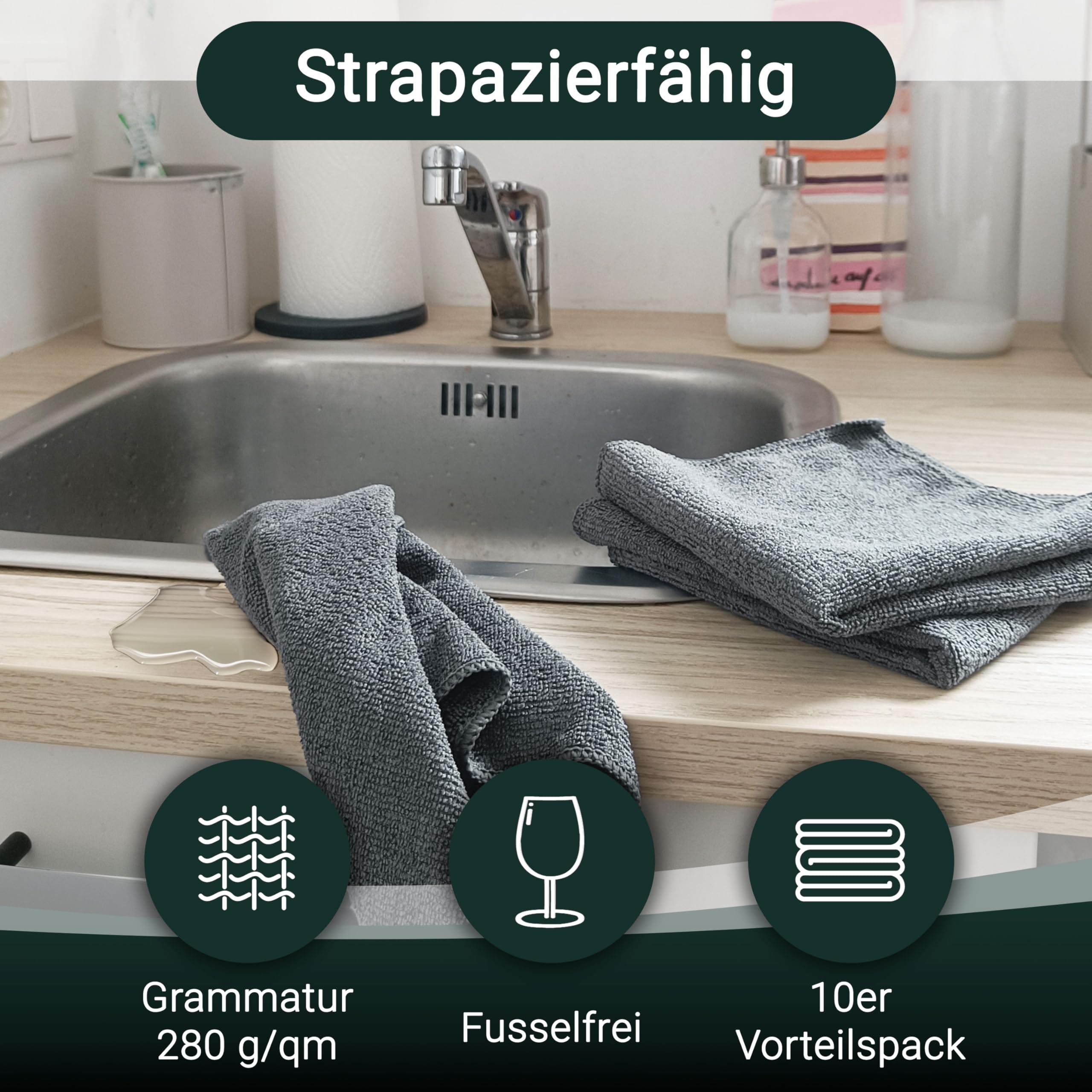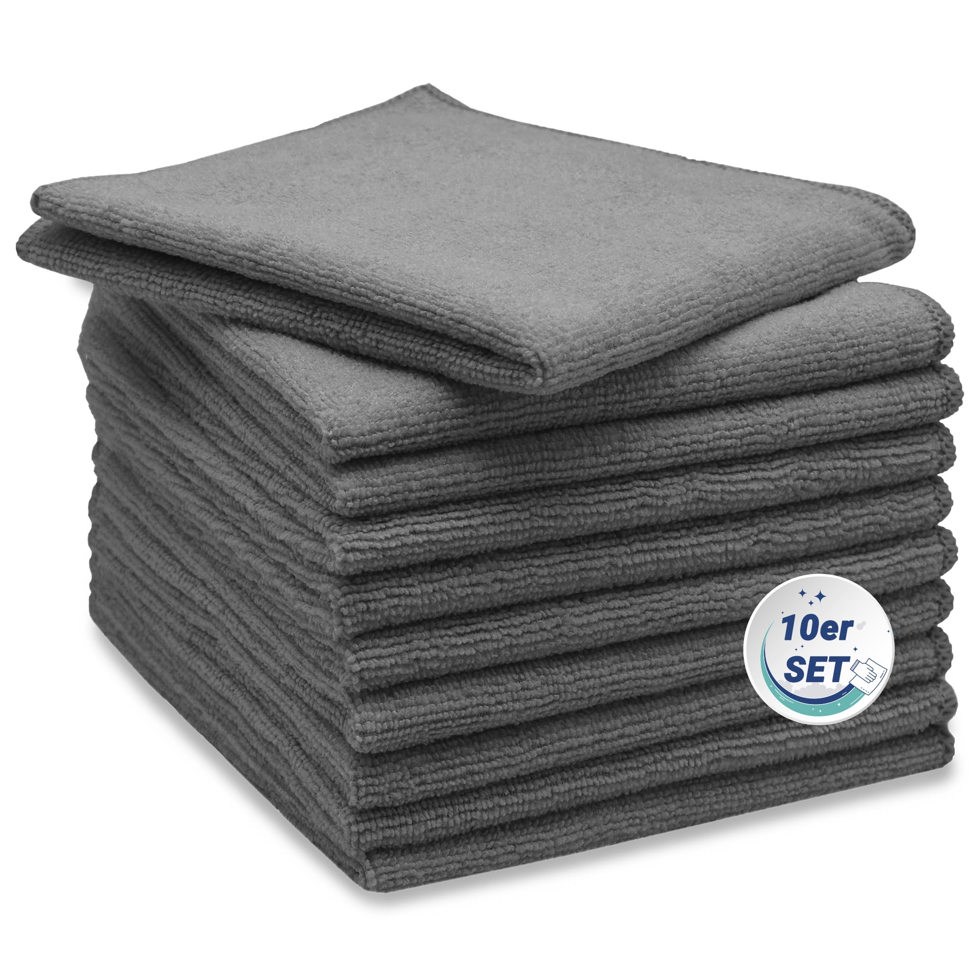 ZOLLNER 10er Set Mikrofasertücher für streifenfreien Glanz - flusenfreie und saugstarke Reinigungstücher - waschbar bis 60°C - 32x32cm in grau - Hotelqualität