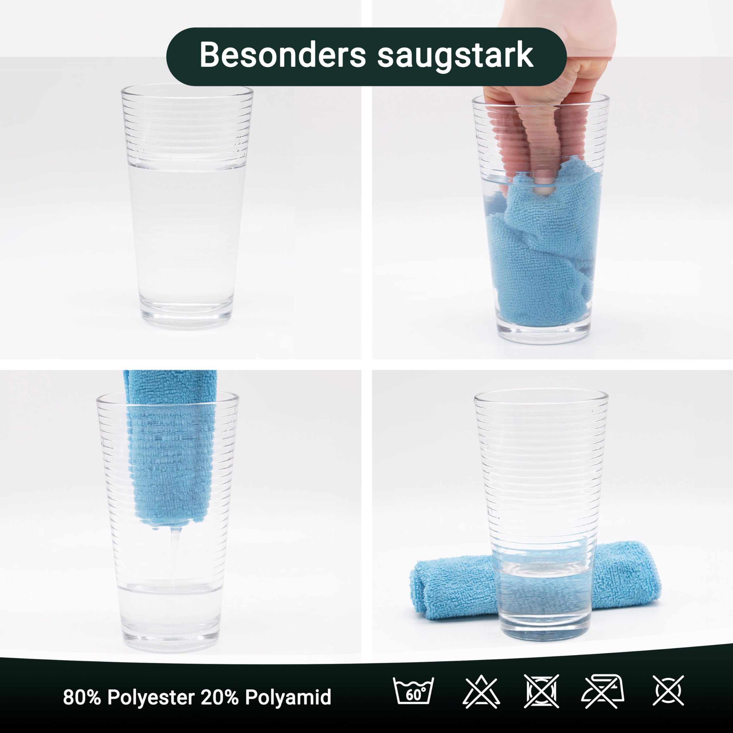 ✓ Die schnelltrocknenden Tücher sind bei 60°C waschbar. 80% Polyester und 20% Polyamid
