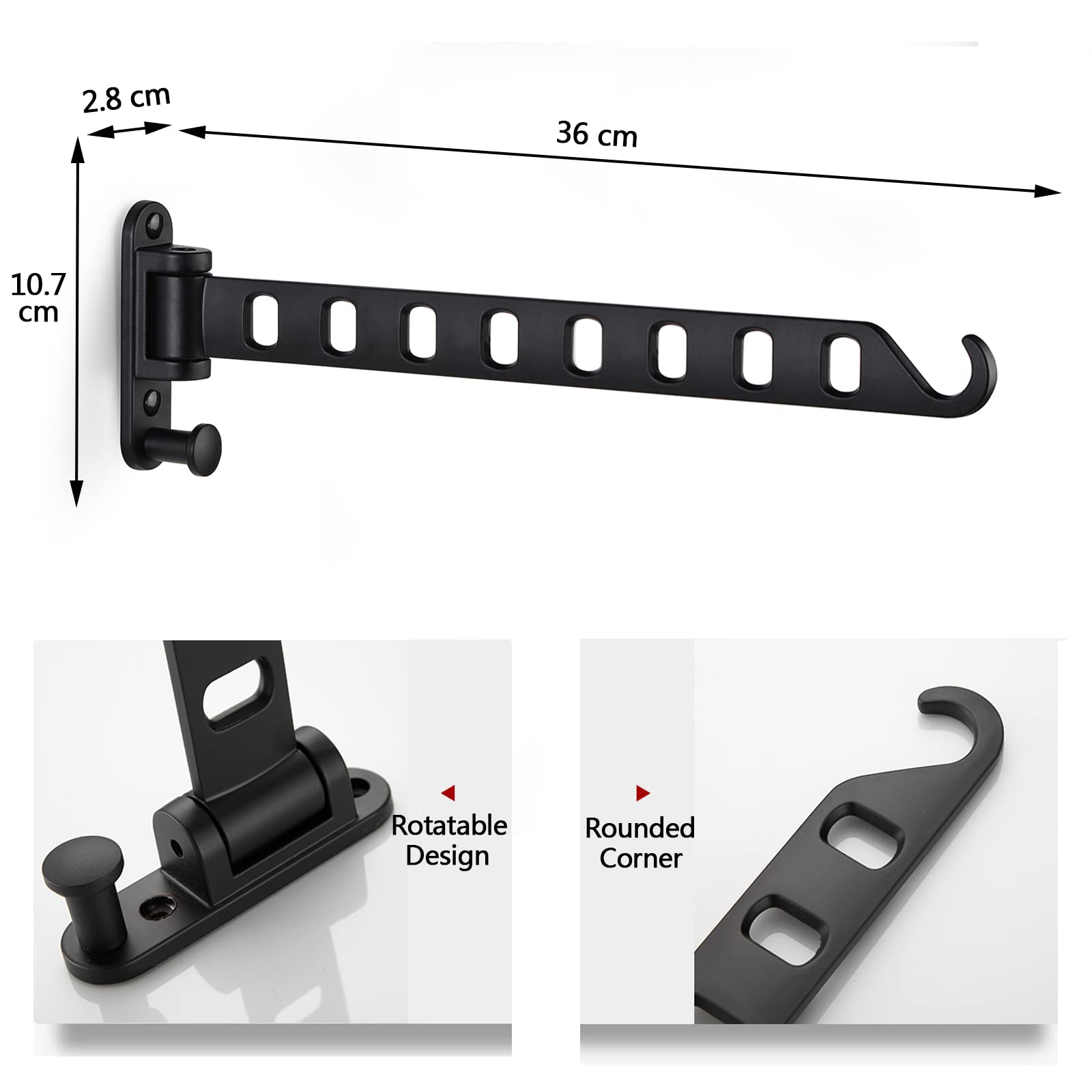 ZUIMENG Wand Kleiderständer Klappbar, 180°Drehbare Kleiderhaken kleiderstange, Wandhaken Hakenleiste Garderobenhaken kleiderlüfter für Balkon Waschküche Badezimmer (Schwarz, 8 Löcher)