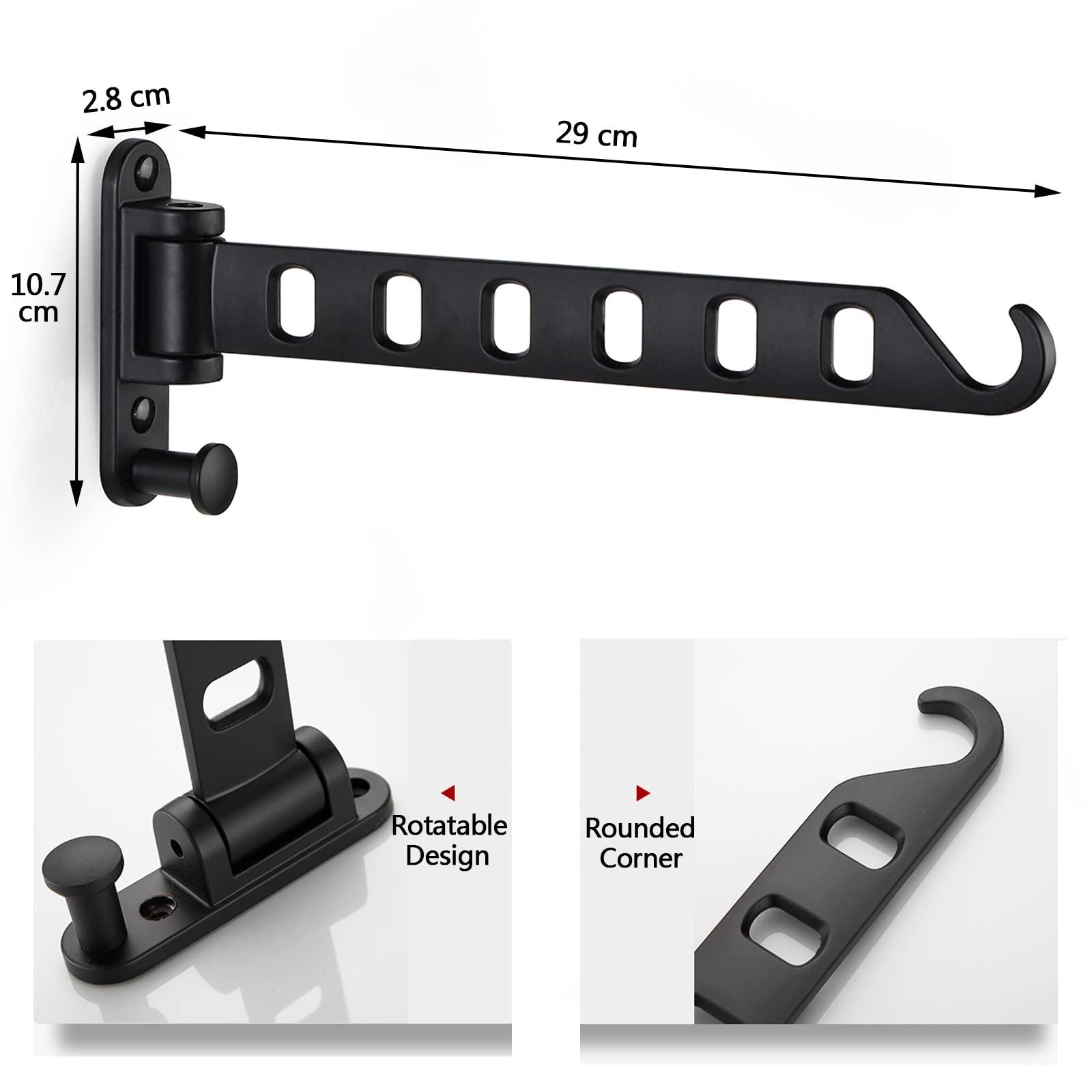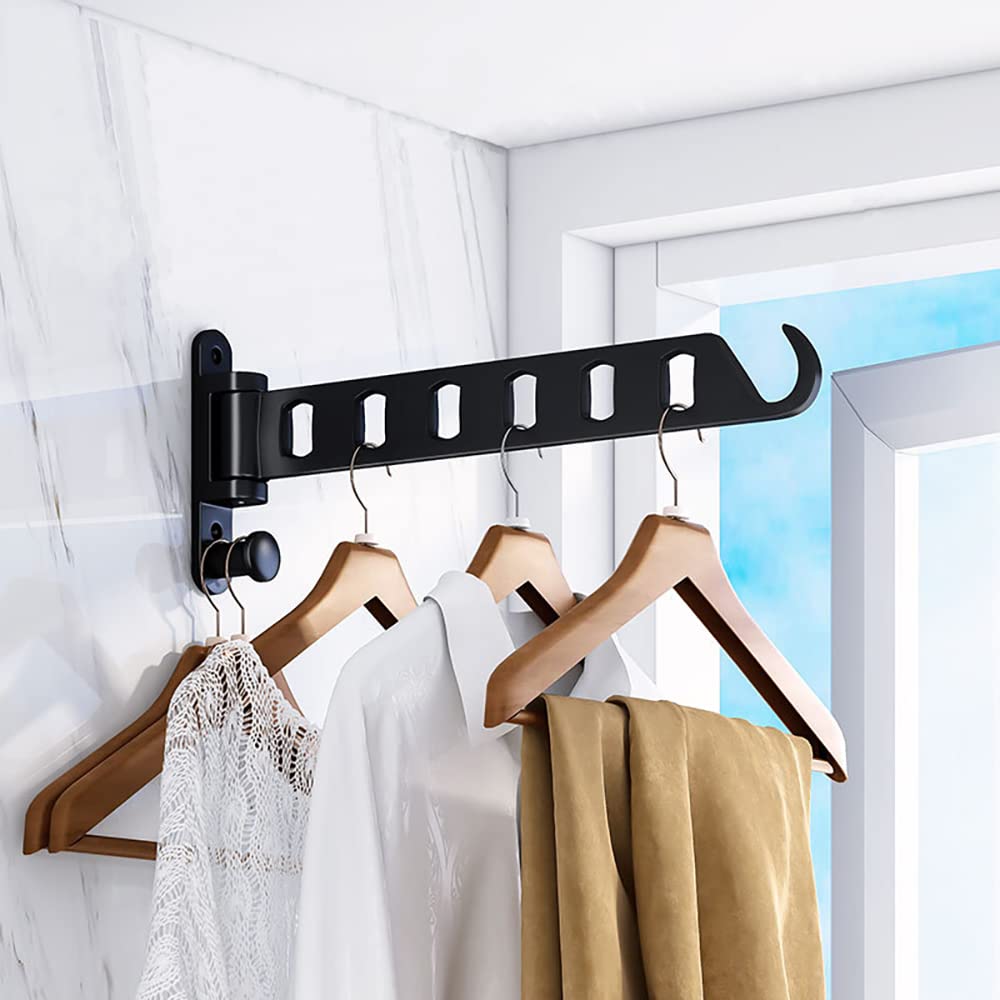 ZUIMENG Wand Kleiderständer Klappbar, 180°Drehbare Kleiderhaken kleiderstange, Wandhaken Hakenleiste Garderobenhaken kleiderlüfter für Balkon Waschküche Badezimmer (Schwarz, 1 Stück)