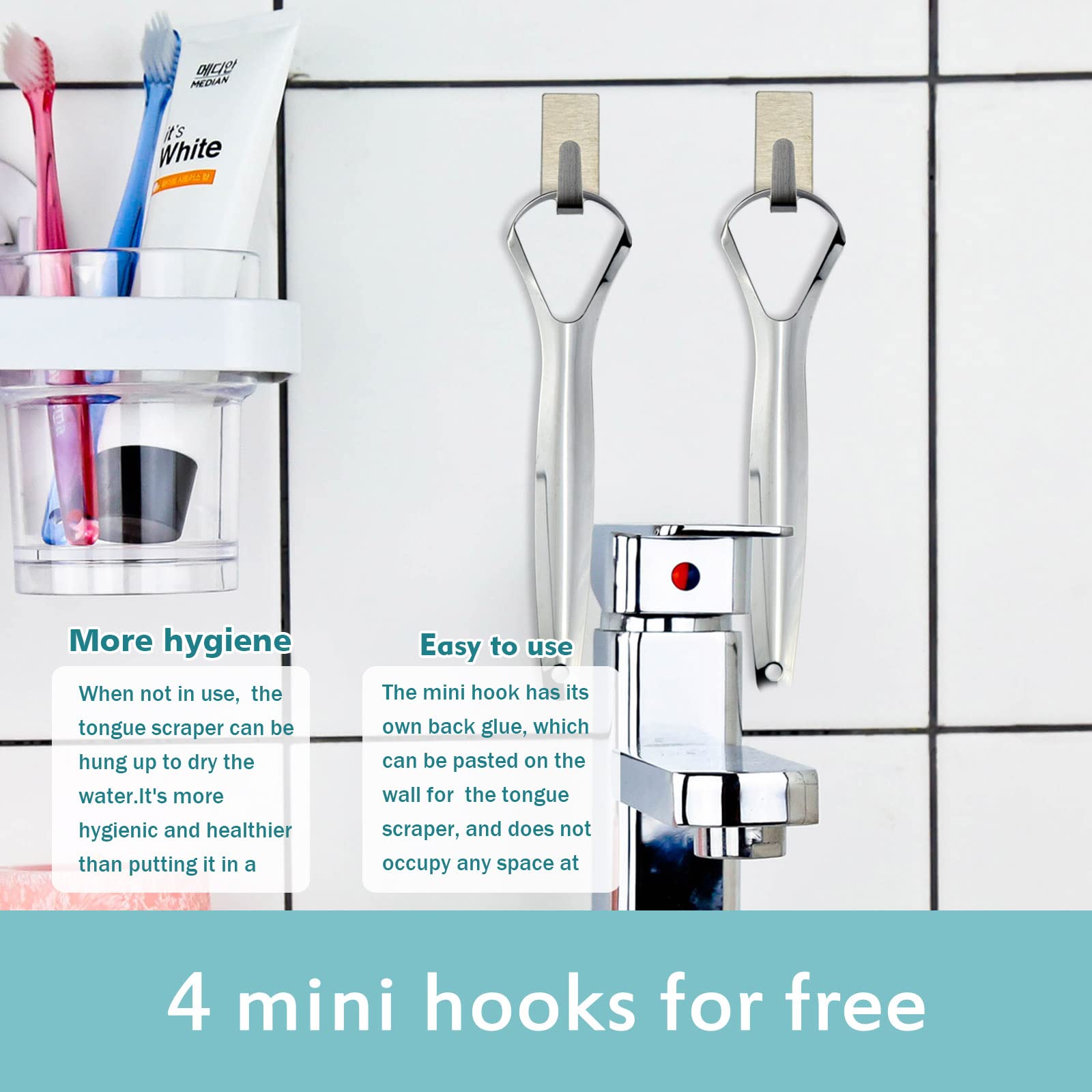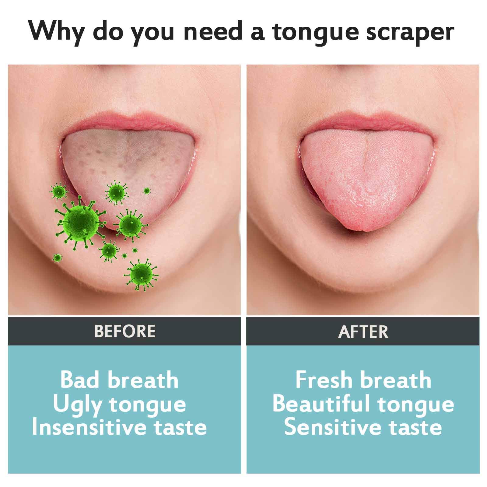 Zungenreiniger (4 Stück) – Zungenschaber Edelstahl mit Mini-Haken, Zungenreiniger Metall gegen Mundgeruch, Zungenbürste für Erwachsene und Kinder Optimale Mundhygiene mit unserem hochwertigen Zungenschaber Edelstahl Eine gründliche Zungenreinigung ist essenziell für frischen Atem und eine gesunde Mundflora. Unser Zungenreiniger Edelstahl entfernt effektiv Beläge und Ablagerungen. Durch die tägliche Anwendung unseres Zungenschaber Metall können Sie für ein frisches Mundgefühl sorgen. Hochwertiges Material – Langlebig und hygienisch Unser Zungenschaber Edelstahl besteht aus rostfreiem, hochwertigem Edelstahl, der langlebig und besonders hygienisch ist. Im Vergleich zu Kunststoff-Zungenreinigern ist Edelstahl widerstandsfähiger, einfacher zu reinigen und nimmt keine Gerüche auf. Dank seiner robusten Verarbeitung kann dieser Zungenreiniger Metall über lange Zeit verwendet werden, ohne an Qualität zu verlieren. Ergonomisches und sicheres Design für eine angenehme Anwendung Der Zungenschaber Metall ist speziell mit einem stromlinienförmigen, ergonomischen Design ausgestattet, das sich optimal an die Zungenoberfläche anpasst. Die glatten, abgerundeten Kanten sorgen für eine sanfte Reinigung ohne Kratzen. Der rutschfeste, bequeme Griff ermöglicht eine sichere Handhabung und erleichtert die Anwendung – ideal für Erwachsene und Kinder. Einfache Anwendung – Effektive Reinigung Um optimale Ergebnisse zu erzielen, empfehlen wir, den Zungenreiniger Edelstahl täglich zu verwenden. Beginnen Sie beim ersten Gebrauch mit sanftem Schaben von der Zungenmitte nach aussen. Sobald Sie sich an die Anwendung gewöhnt haben, können Sie die Reinigung schrittweise intensivieren. Praktisches Set mit 4 Stück – Perfekt für die ganze Familie Unser Zungenreiniger Edelstahl wird als praktisches 4er-Set geliefert, sodass Sie und Ihre Familie stets einen sauberen Zungenschaber zur Hand haben. Die hygienische Aufbewahrung und Reinigung sind denkbar einfach – nach jedem Gebrauch kann der Zungenschaber Metall einfach unter fliessendem Wasser abgespült oder in heissem Wasser gereinigt werden. Elegante Geschenkbox & Zufriedenheitsgarantie Jeder Zungenreiniger Metall wird in einer hochwertigen Geschenkbox geliefert – ideal für den Eigengebrauch oder als Geschenk für Freunde und Familie. Unser Zungenschaber Edelstahl ist eine sinnvolle Ergänzung für jede tägliche Mundhygiene-Routine. Sorgen Sie für eine optimale Mundpflege und bestellen Sie noch heute unser hochwertiges Zungenreiniger Edelstahl-Set!