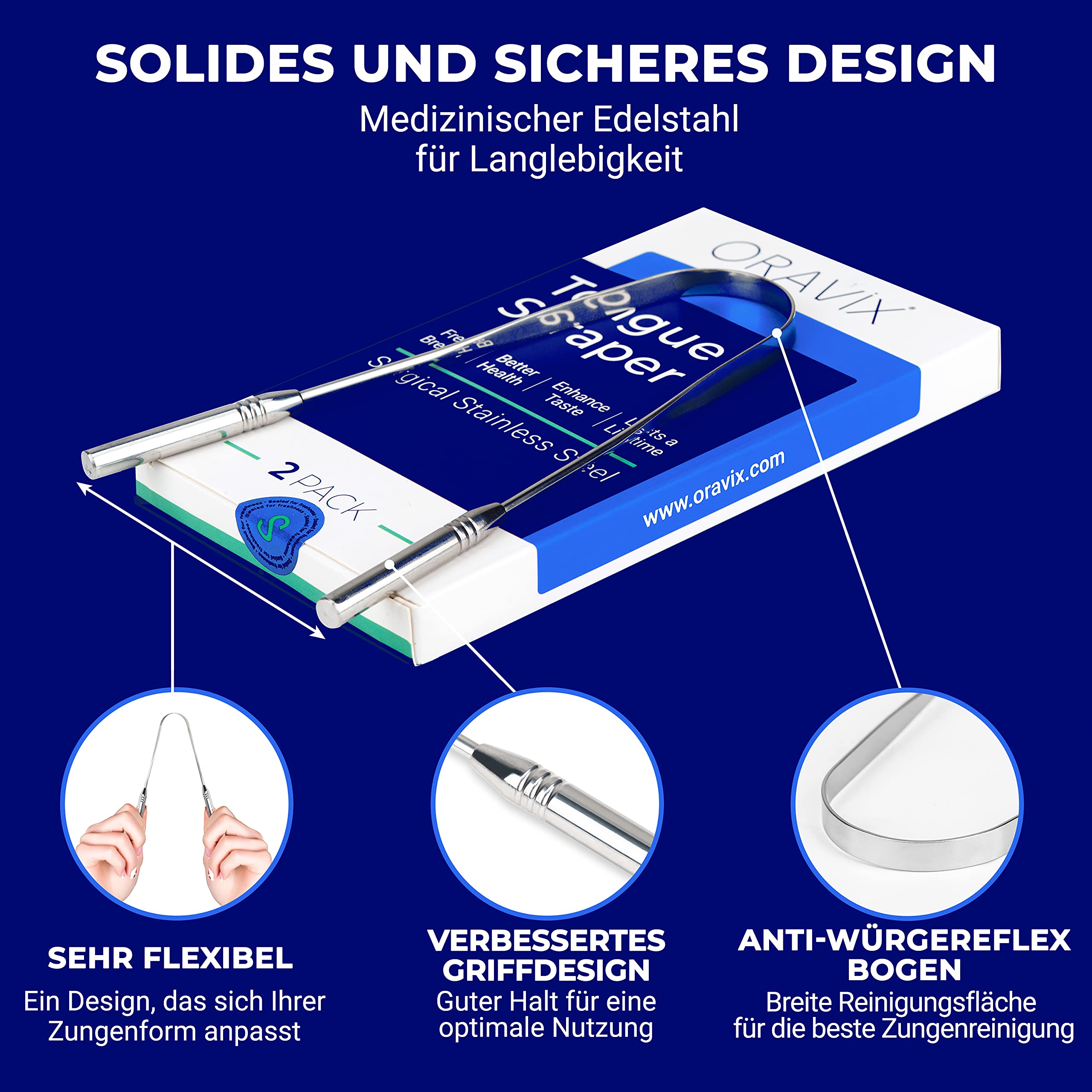 Zungenreiniger Edelstahl | Zweier-Pack | Zungenreiniger | Für einen frischen Atem und eine bessere Mundgesundheit | Zungenschaber Edelstahl | Zungenreiniger für Kinder und Erwachsene | ORAVIX