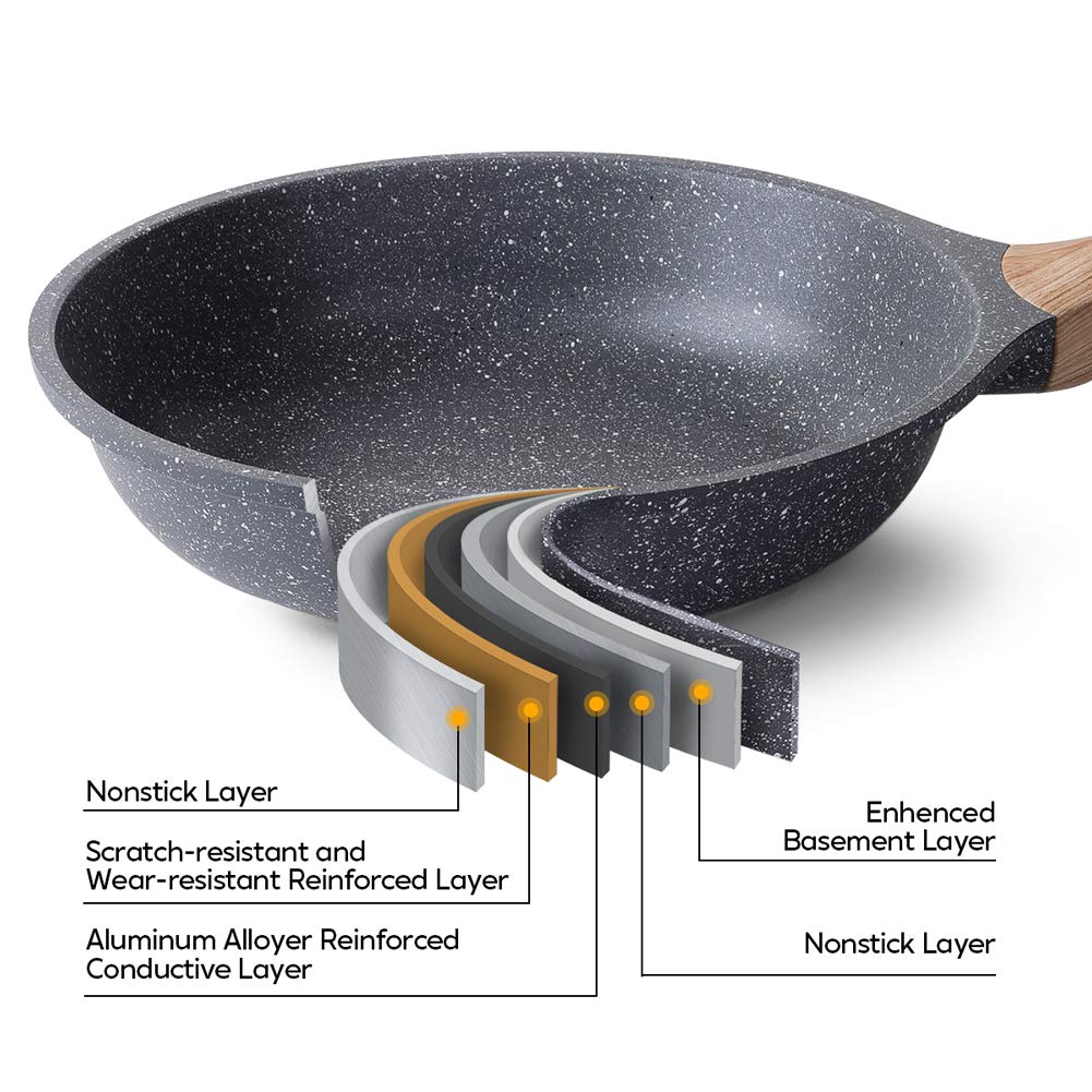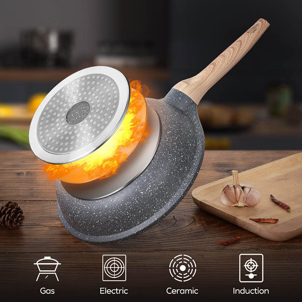 Diese Granitstein-Bratpfanne ist ein unverzichtbares Werkzeug, um Ihre exquisite Küche zu präsentieren. In dieser Antihaft-Bratpfanne finden Sie alles, was Sie für die Zubereitung köstlicher Pfannengerichte und mehr benötigen. Die antihaftbeschichtete Granit-Bratpfanne aus dickem Aluminium erwärmt sich schnell und gleichmässig für perfekte Ergebnisse. Die antihaftbeschichtete Oberfläche aus Granit fördert das gesunde Kochen, da weniger Öl benötigt wird.