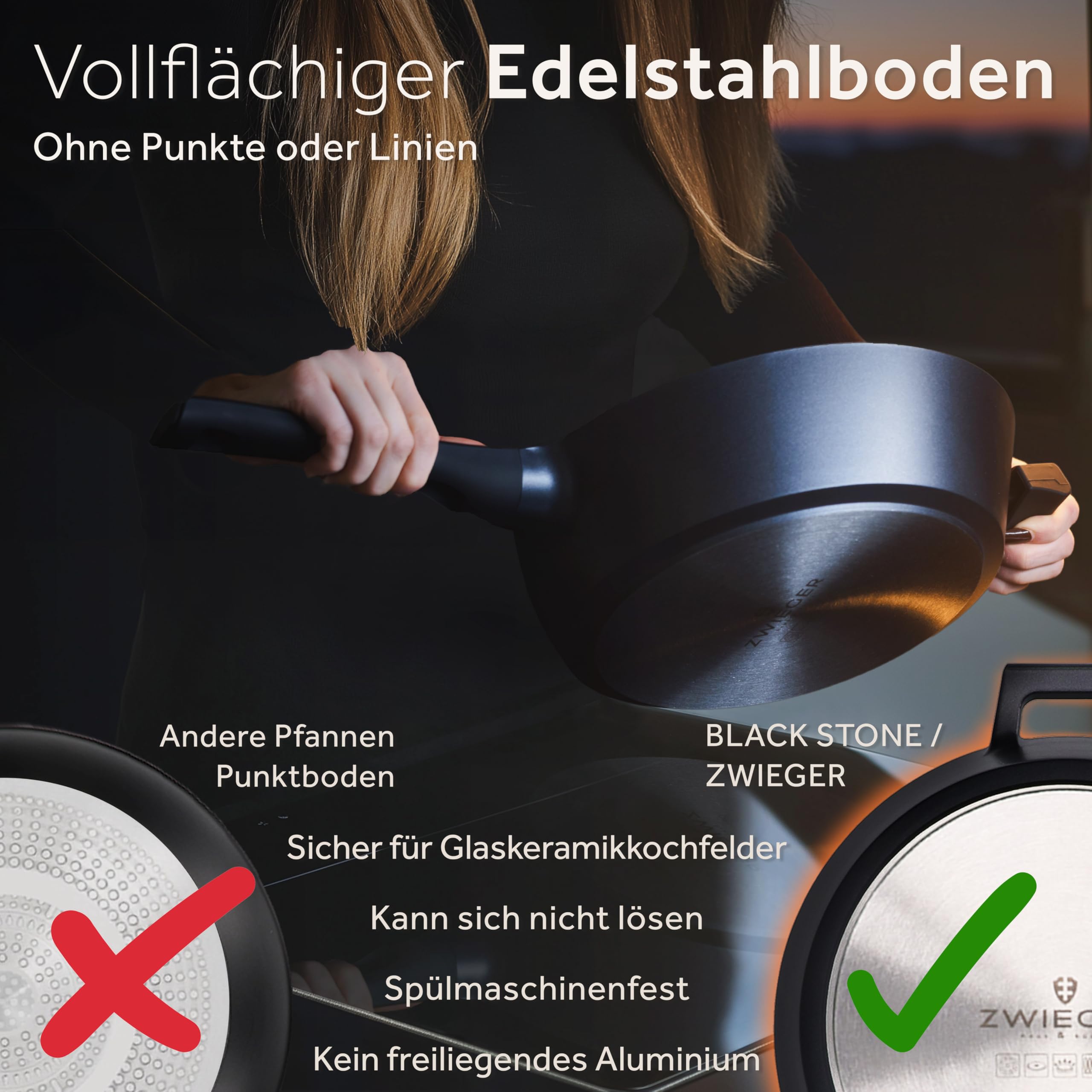 ZWIEGER Grosse Pfanne mit Deckel 28cm – Schmorpfanne 28 cm hoher Rand, Aluguss, vollflächiger Edelstahlboden, für alle Herdarten (inklusive Induktion) geeignet – Antihaft, PFOA- & PFOS-frei
