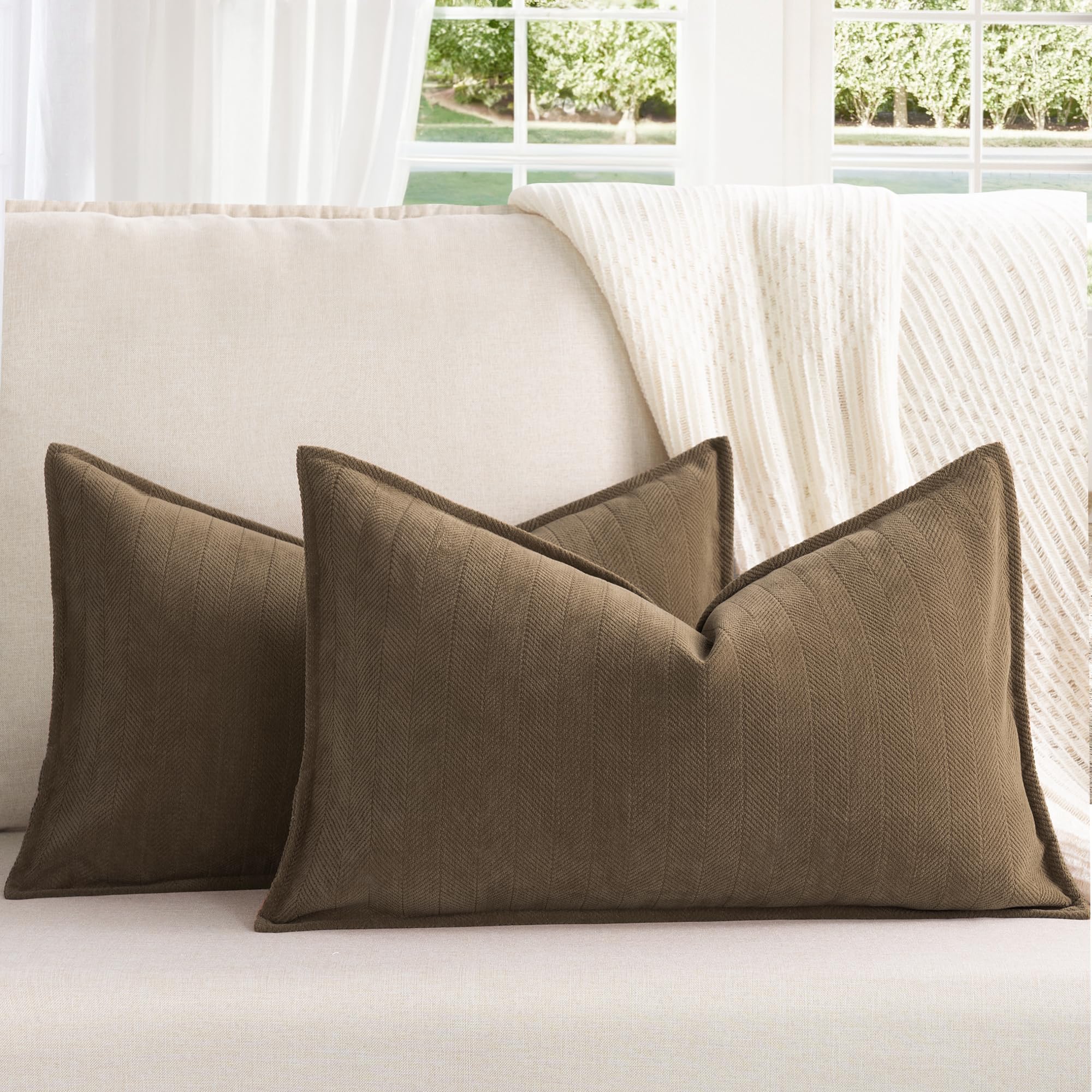 ZWJD Braun Kissenbezug 30x50 2er Set Chenille Kissenbezüge Sofakissen Kissenhüllen mit elegantem Design, weiche und luxuriöse dekorative Dekokissen für Couch, Bett und Heimdekoration