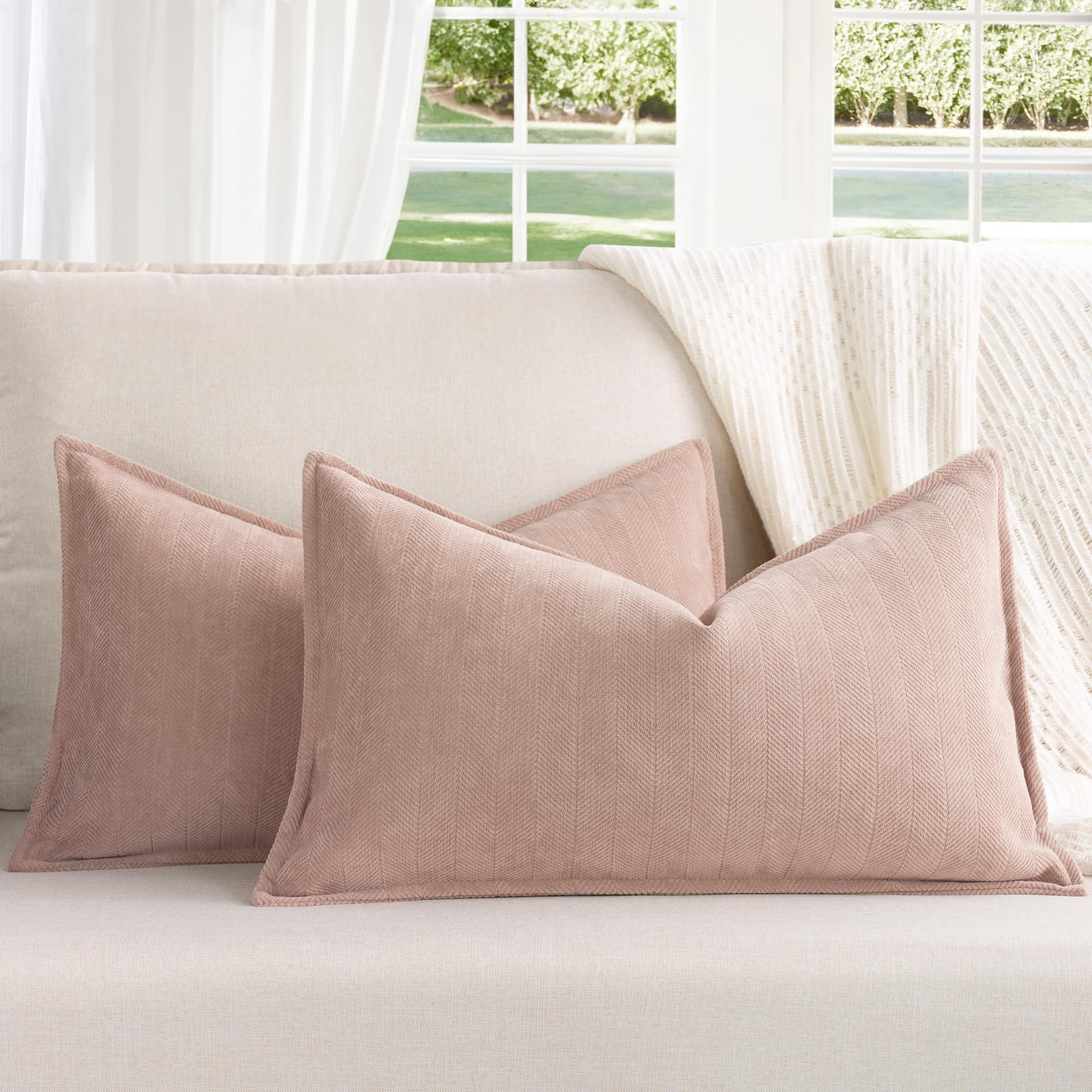ZWJD Dusty Pink Kissenbezug 30x50 2er Set Chenille Kissenbezüge Sofakissen Kissenhüllen mit elegantem Design, weiche und luxuriöse dekorative Dekokissen für Couch, Bett und Heimdekoration