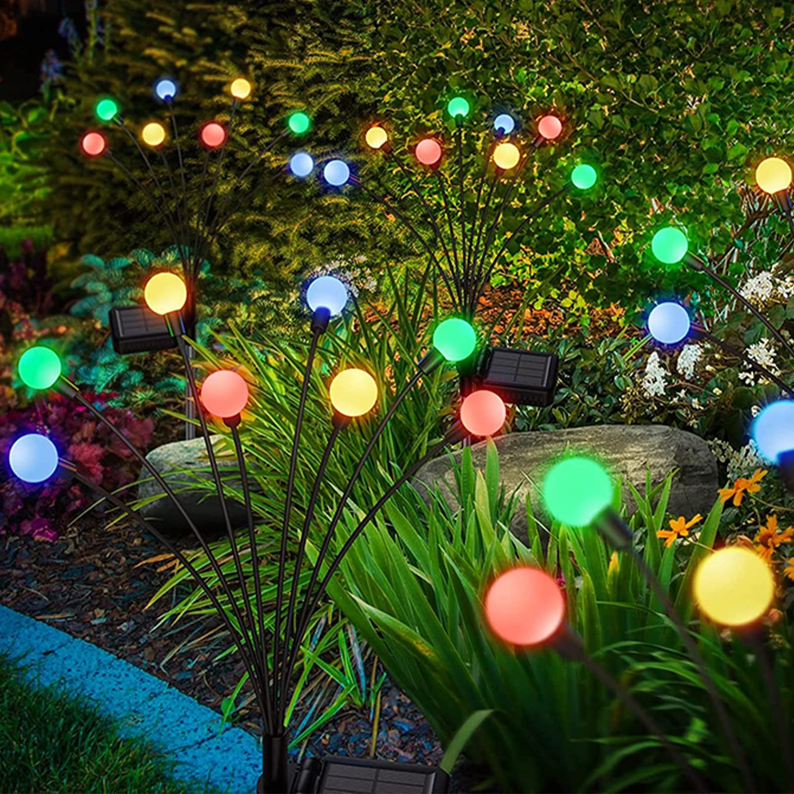 ZWOOS 4er-Pack Solarlampen für Aussenbereich und Garten - 10 LED Glühwürmchen Solarleuchten für Balkon und Garten, IP65 Wasserdicht, warmweisses Licht, (RGB)
