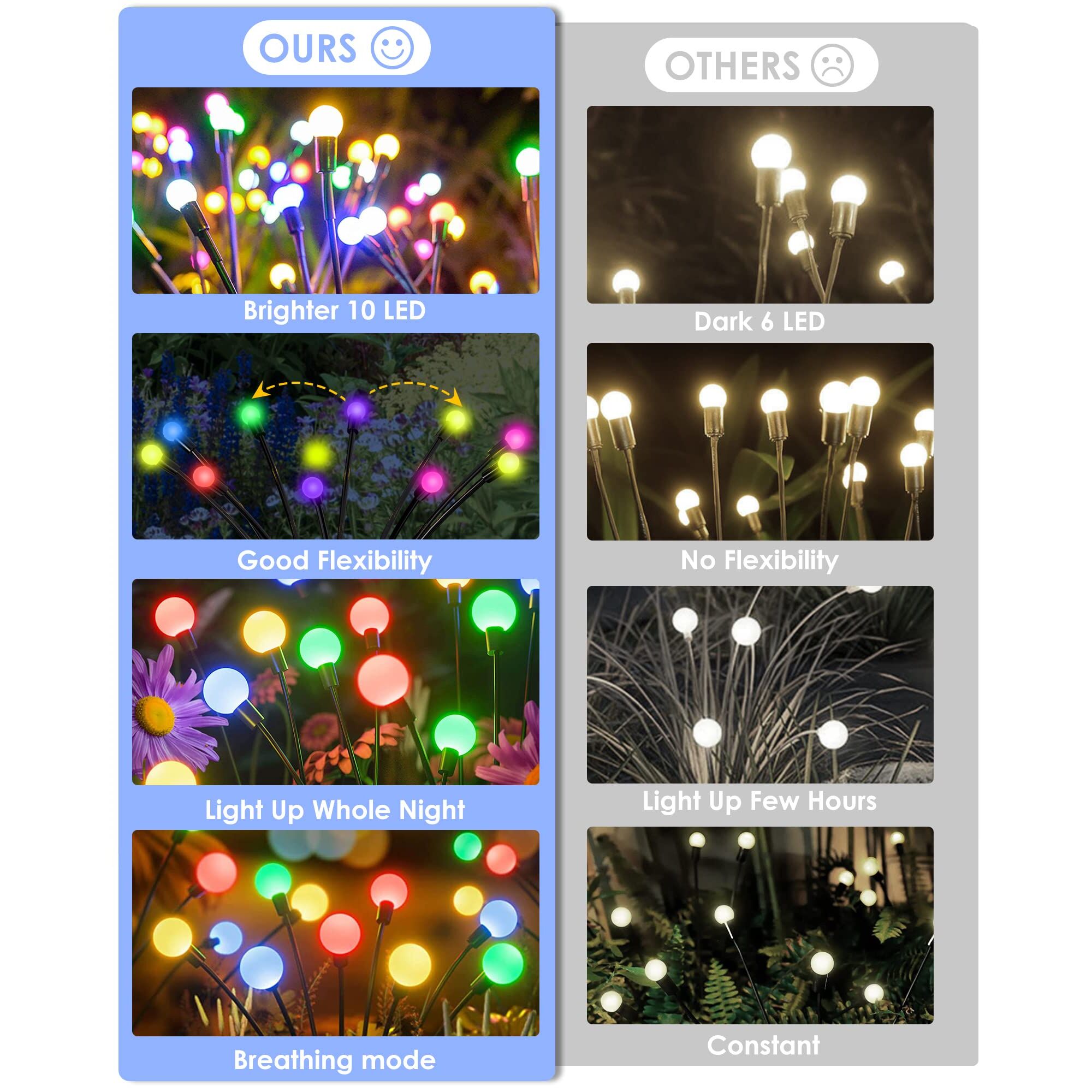 ZWOOS 4er-Pack Solarlampen für Aussen Garten, 10 LED Glühwürmchen Solarleuchten für Garten, Balkon - IP65 Wasserdicht, Warmweiss - Beleuchten für die ganze Nacht