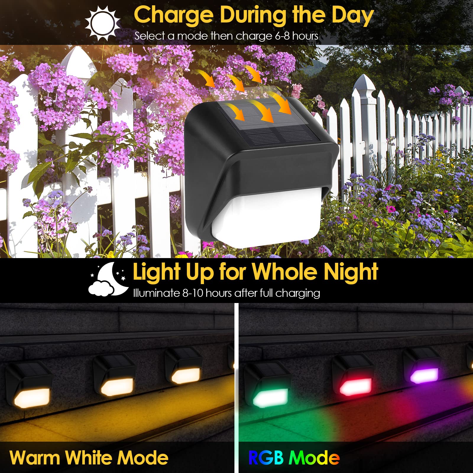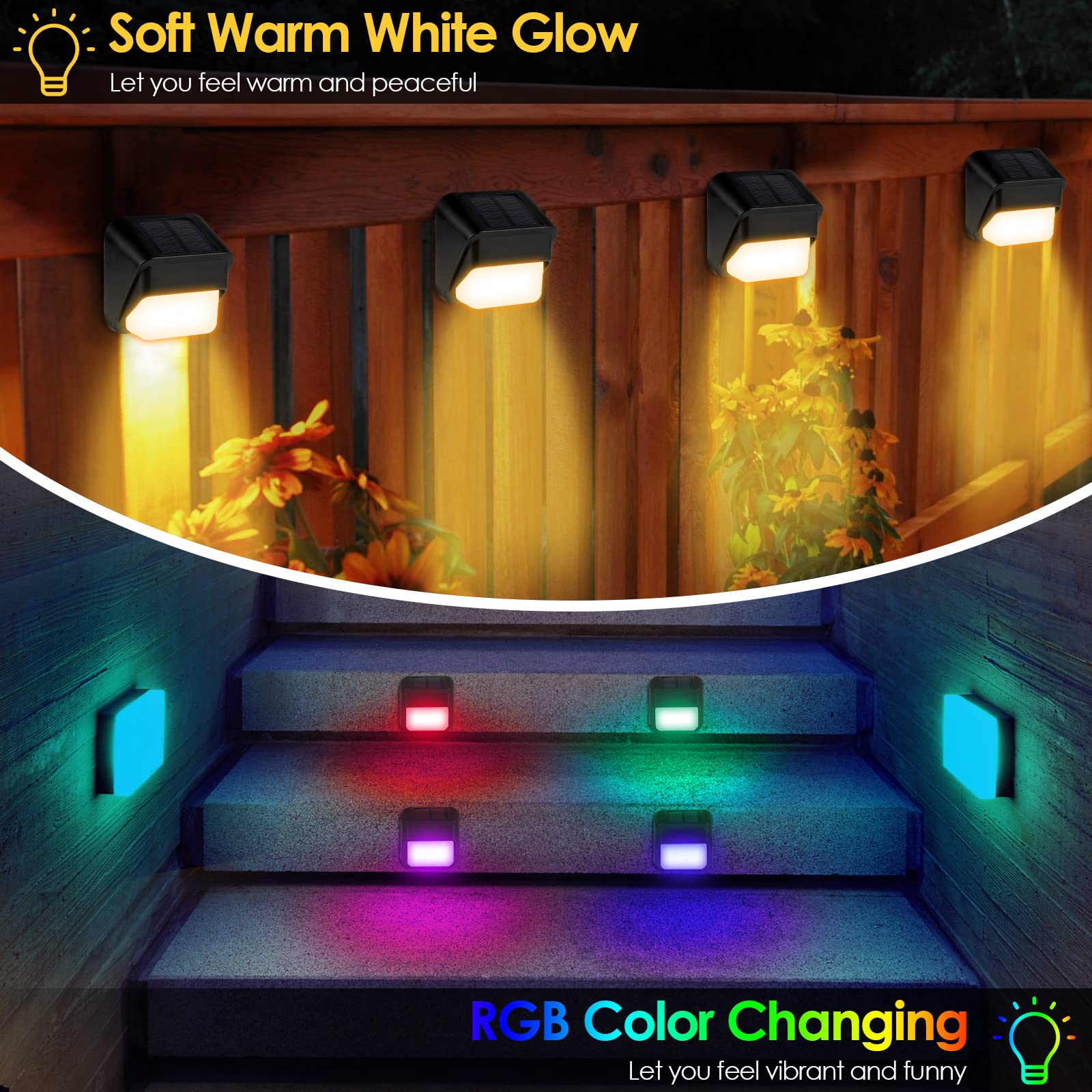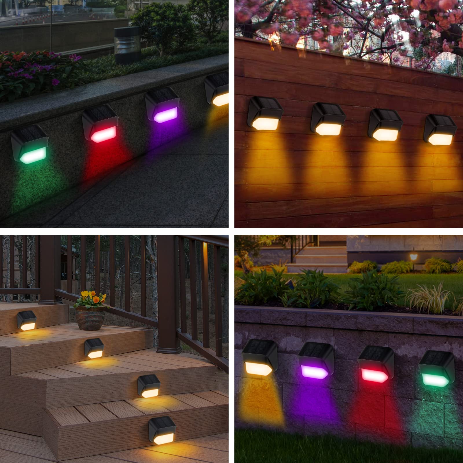 ZWOOS 4er-Set Solarlampen für Aussen Garten, Warmweiss/RGB Farbwechselnde, Solar Wandleuchte Aussen LED für Terrasse, Zaun, Stufen und Treppen